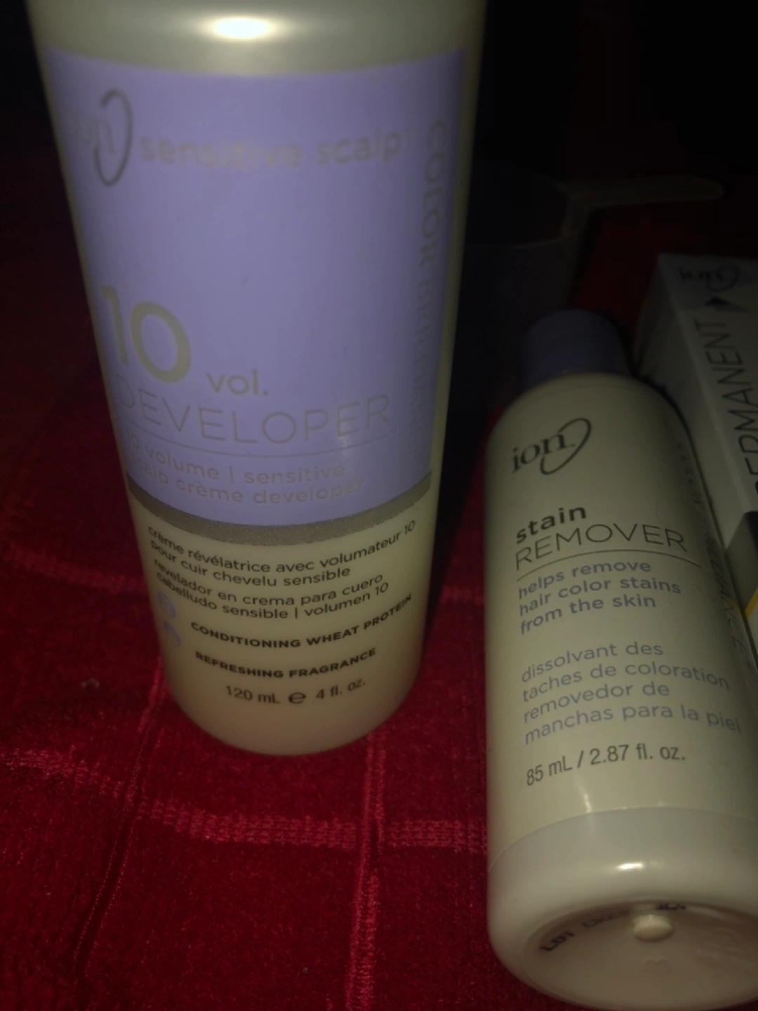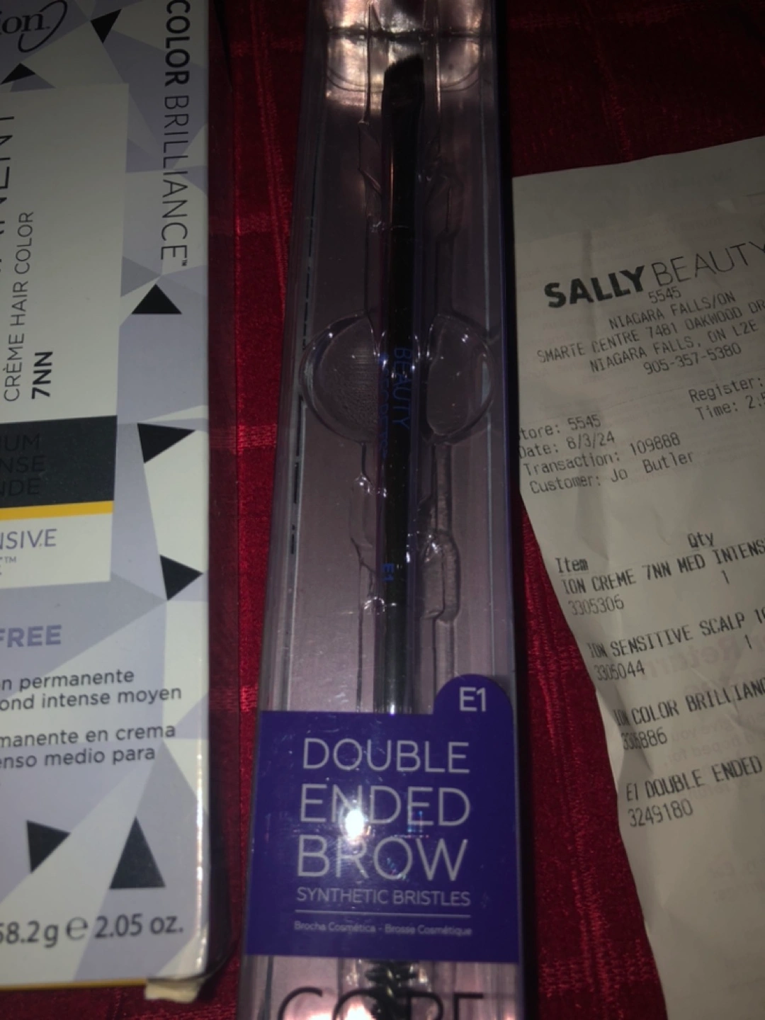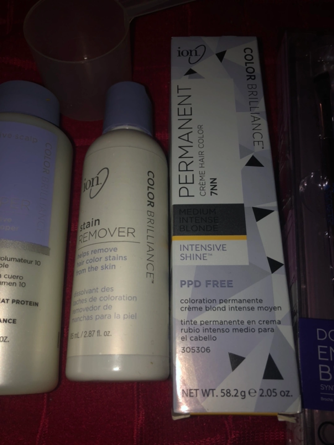 Bundle includes Ion Creme 7NN Medium Intense Blonde hair colour, Ion Sensitive Scalp 10 Volume Developer, Ion Color Brilliance Stain Remover, and a double ended brow brush.