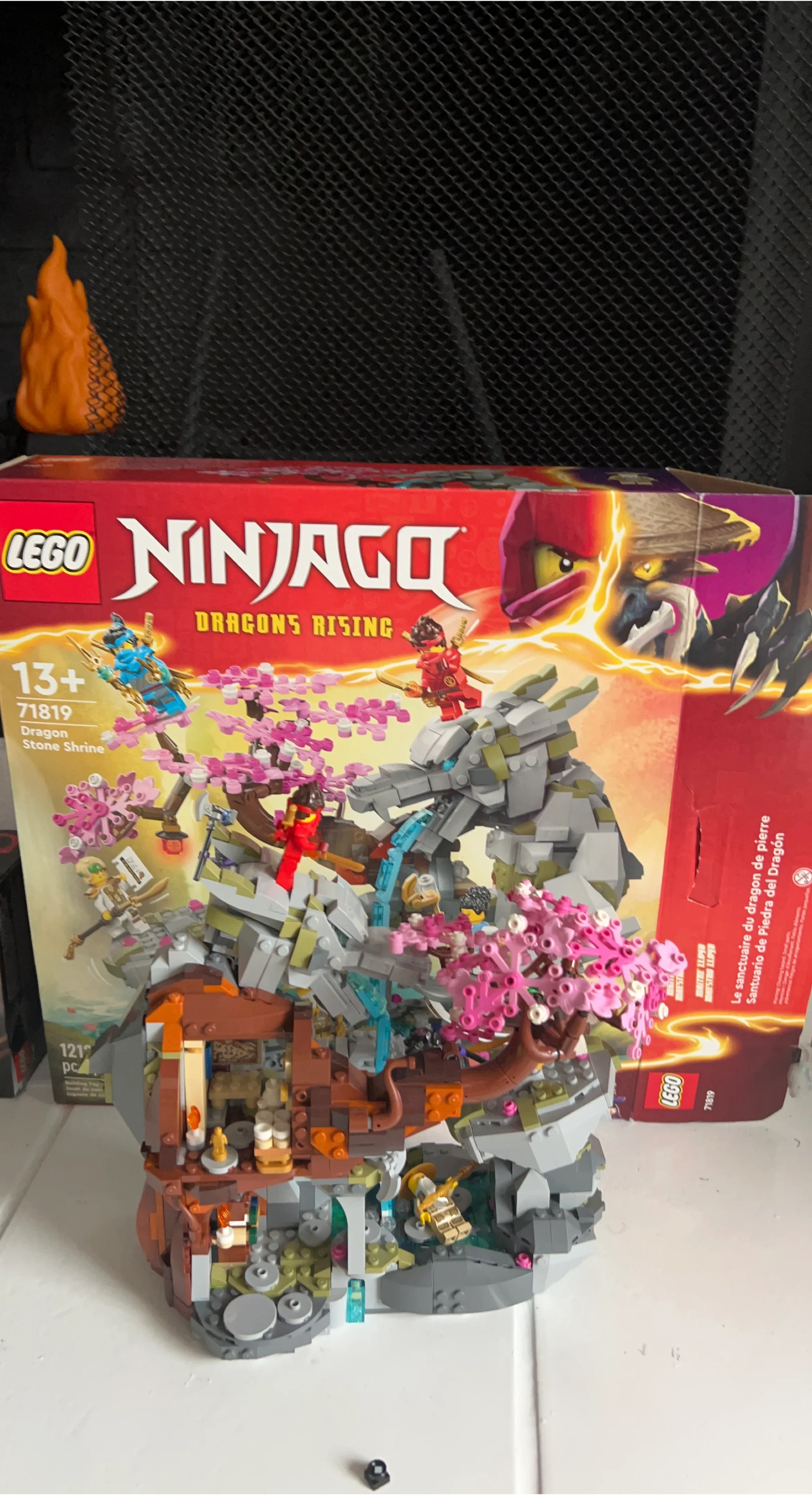 This is the LEGO Ninjago 71819 Dragon Stone Shrine set from the Dragons Rising series. It includes 121 pieces and is recommended for ages 13 and up. It's a fun building toy for fans of Ninjago! Missing 1 character.
