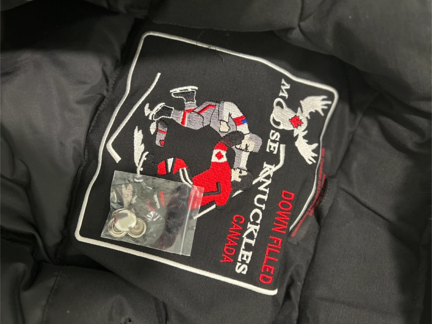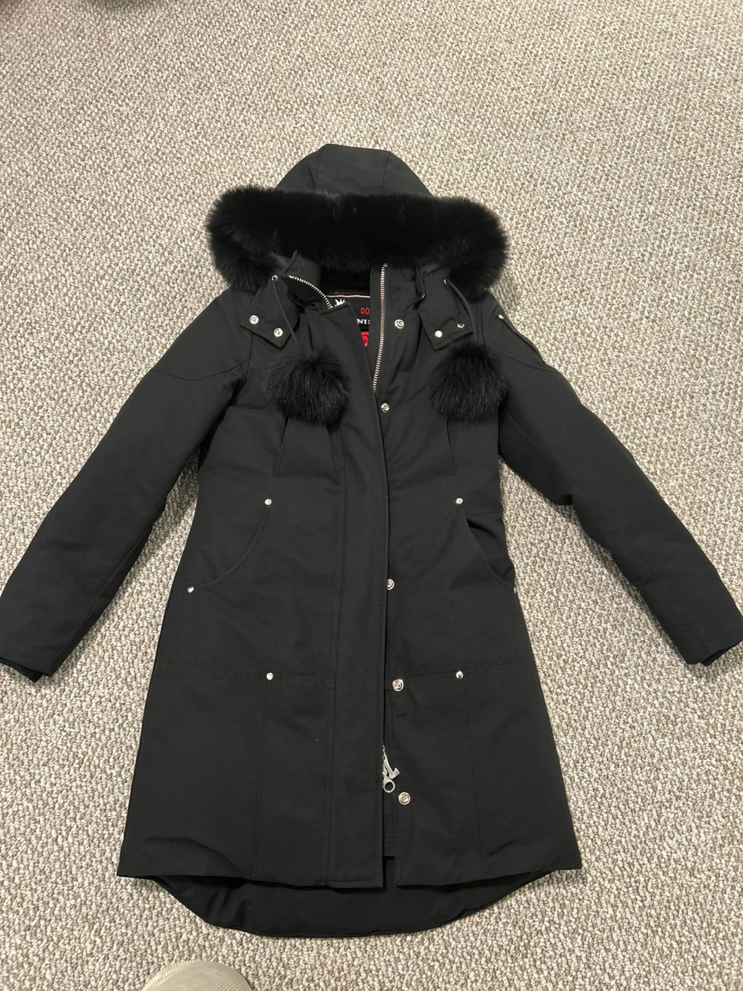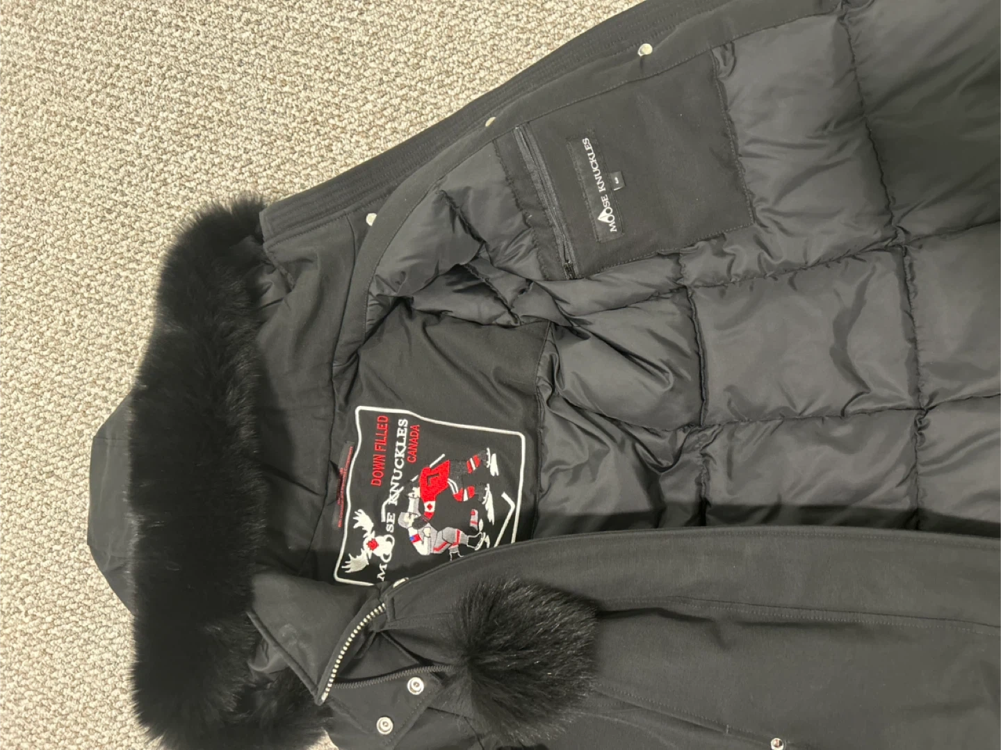 Selling a Moose Knuckles Original Stirling Parka Neoshear in Size Small. This is a premium winter parka from Moose Knuckles, known for its warmth and high-quality construction.