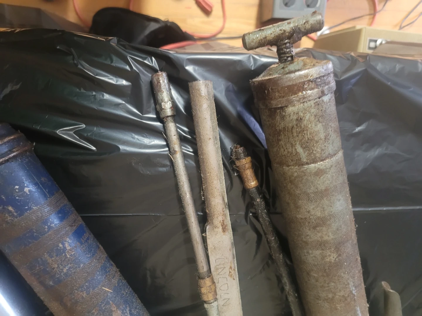 Includes a Lincoln lever-action grease gun and three other grease guns. These are for heavy-duty use. Various sizes and types included.