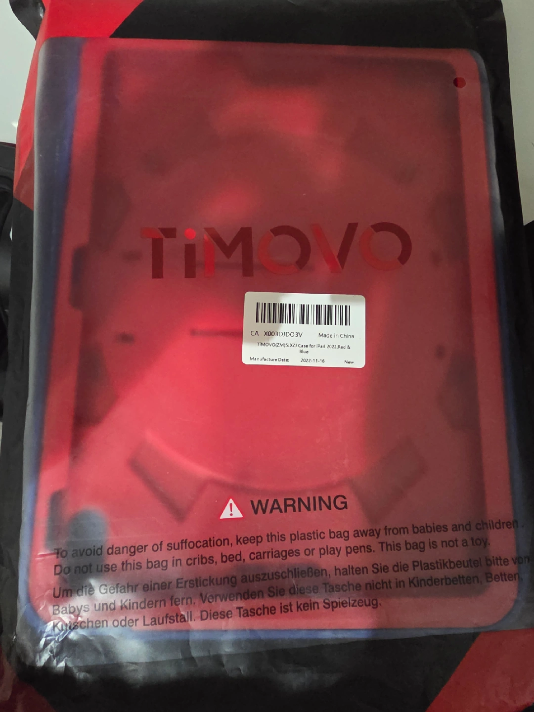 I'm selling a brand new TIMOVO case for the iPad 2022. It's red and blue and still in its original packaging.