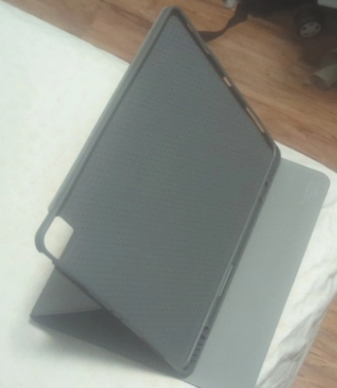 SNAPS ON WELL TO THE IPAD, BUT WHERE THE APPLE PENCIL CHARGES AT THE TOP IT'S BENT A BIT OUT OF PLACE. It contains the part at the button to keep the apple pencil but unless you modify it(putting pressure at the top to fold it to original position) it won't stick to charge at the top. Foldable iPad case. Provides multiple viewing angles. Dark grey colour. Compatible with 12.9" iPad.