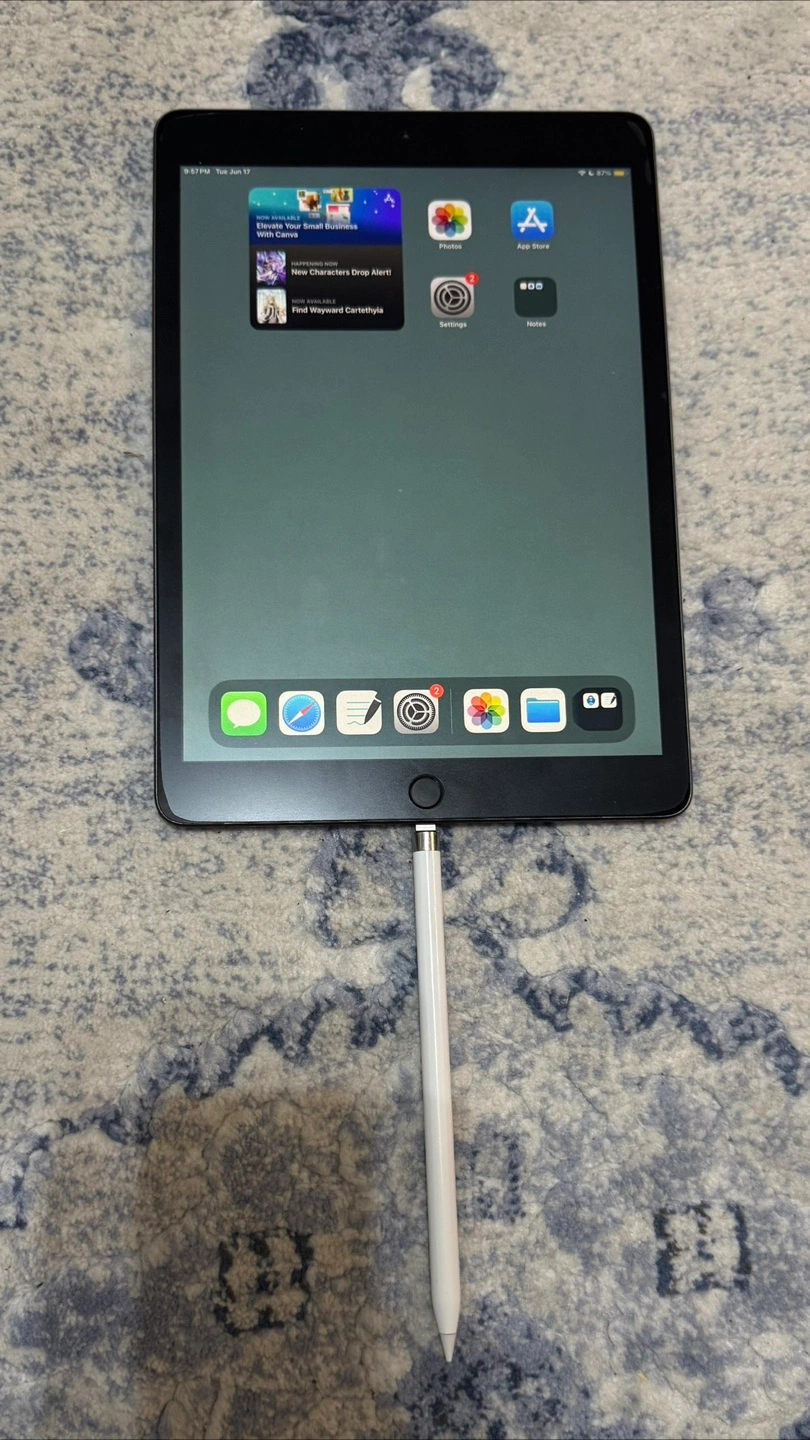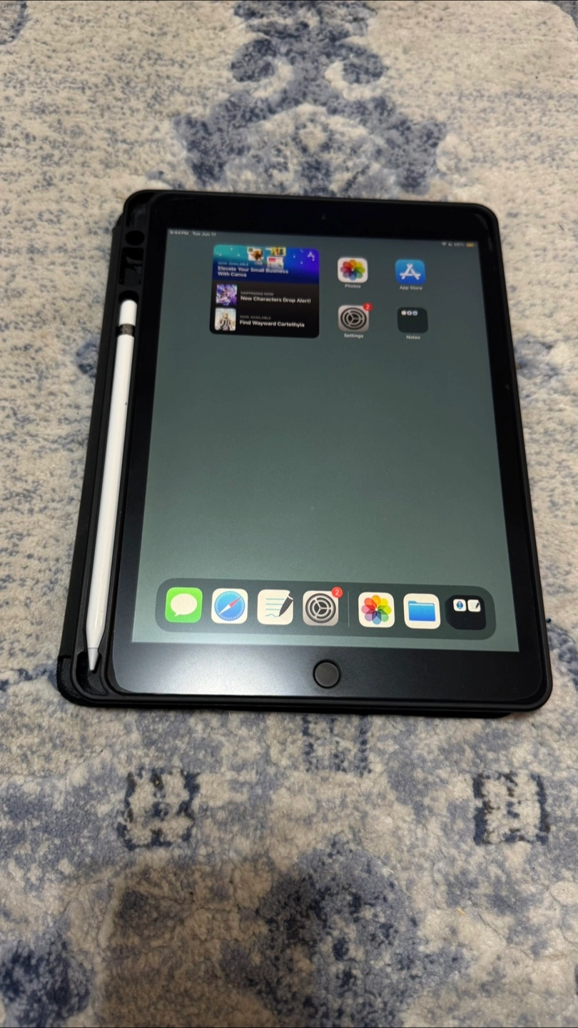 7th generation iPad iOS 18 WIFI only 32 GB storage Space grey COMES WITH: -1st generation Apple Pencil -Ztotop trifold Smart Case with Apple pencil holder -Lightning charging cable -Paper-like matte screen protector (installed)