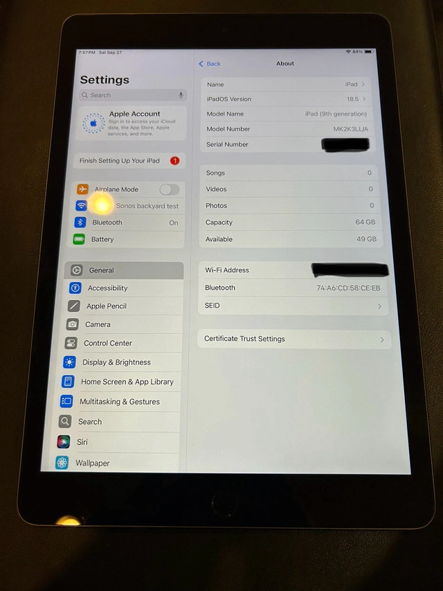 12Selling a used iPad 9th generation with 64GB of storage. It's in good condition and ready for a new owner. This iPad is perfect for browsing, streaming, or getting work done on the go. Despite being pre-owned, it has been well-maintained. Here are some details: * 9th Generation * 64GB Storage * Colour: Space Grey Comes with charger/case If this ad is still up, the iPad is available!