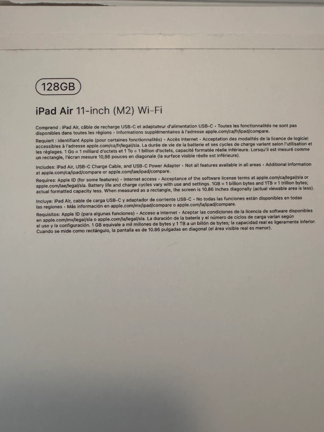 Selling a iPad Air 11-inch (M2) Wi-Fi with 128GB of storage! It comes with the box and included components like the USB-C charge cable and USB-C Power Adapter