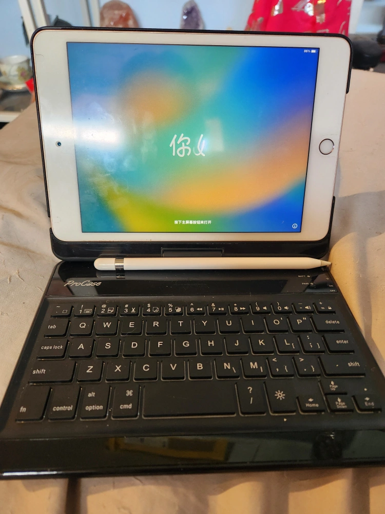 Selling an iPad with a ProCase keyboard case. It comes with a stylus. The keyboard is wireless. Has a paperlike screen protector installed. NO CHARGER. I use a 3 in 1 charger.