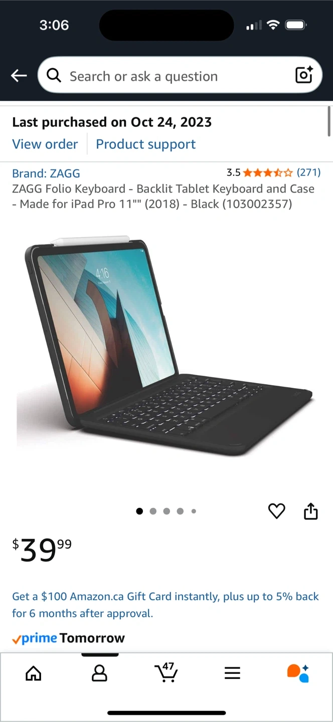 Selling a ZAGG Folio Keyboard - Backlit Tablet Keyboard and Case for iPad Pro 11" (2018) in black. It's in great condition, very lightly used. Perfect for university/college students. I am not anymore and find I have no more need of it. Originally bought for $40+tax. Selling for $15.