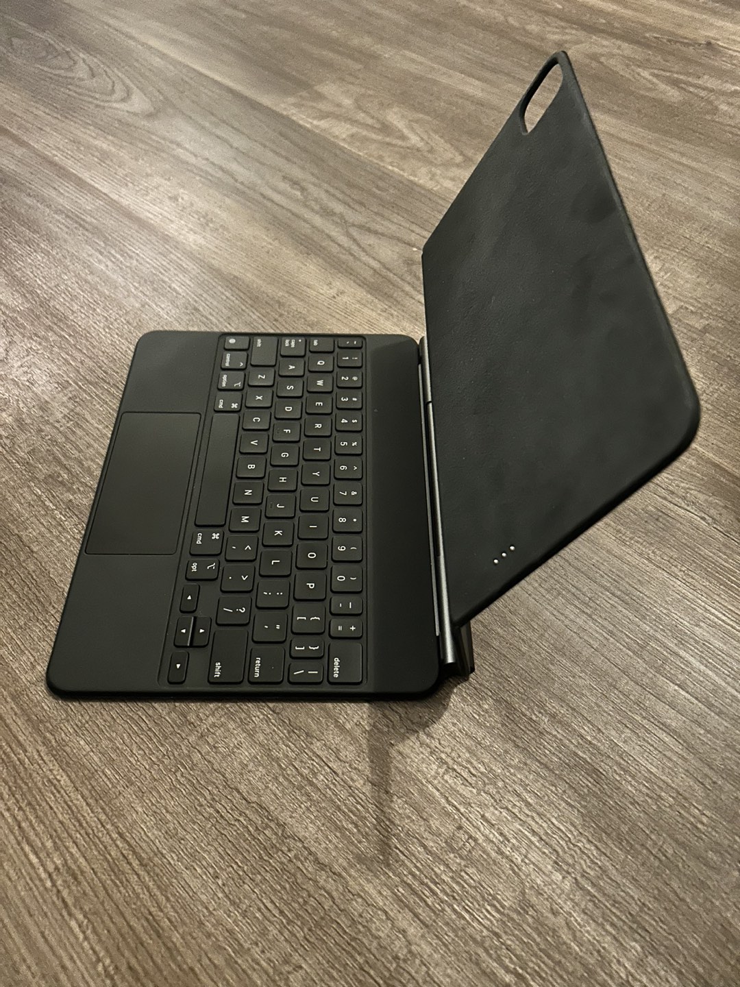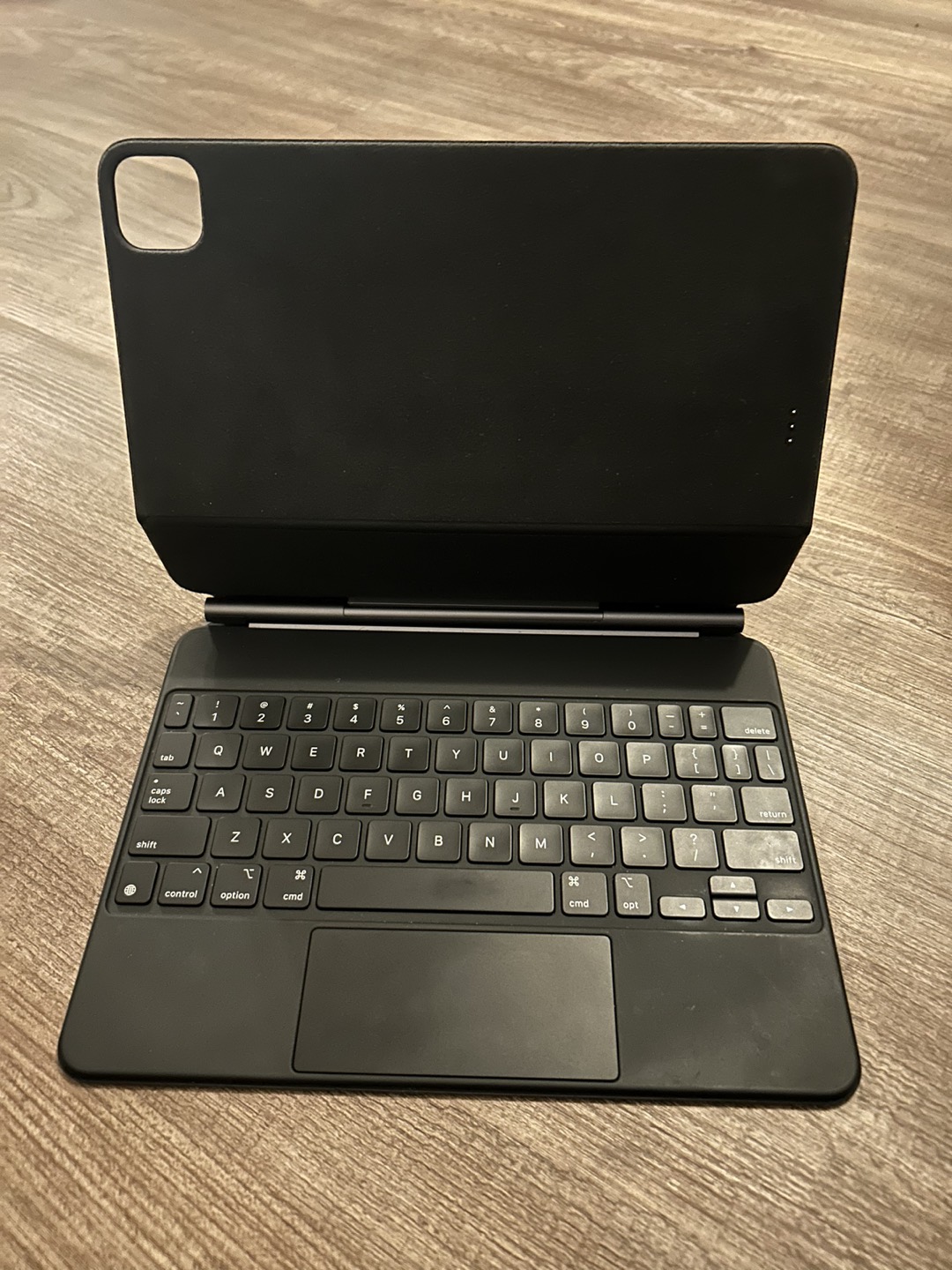 The iPad Pro 11” Magic Keyboard case. I bought this for the iPad Pro 2021 edition. I initially purchased it for 450 after taxes. It has a few scuffs and has worked very well for me but I got another case that suits my needs now and no longer need it