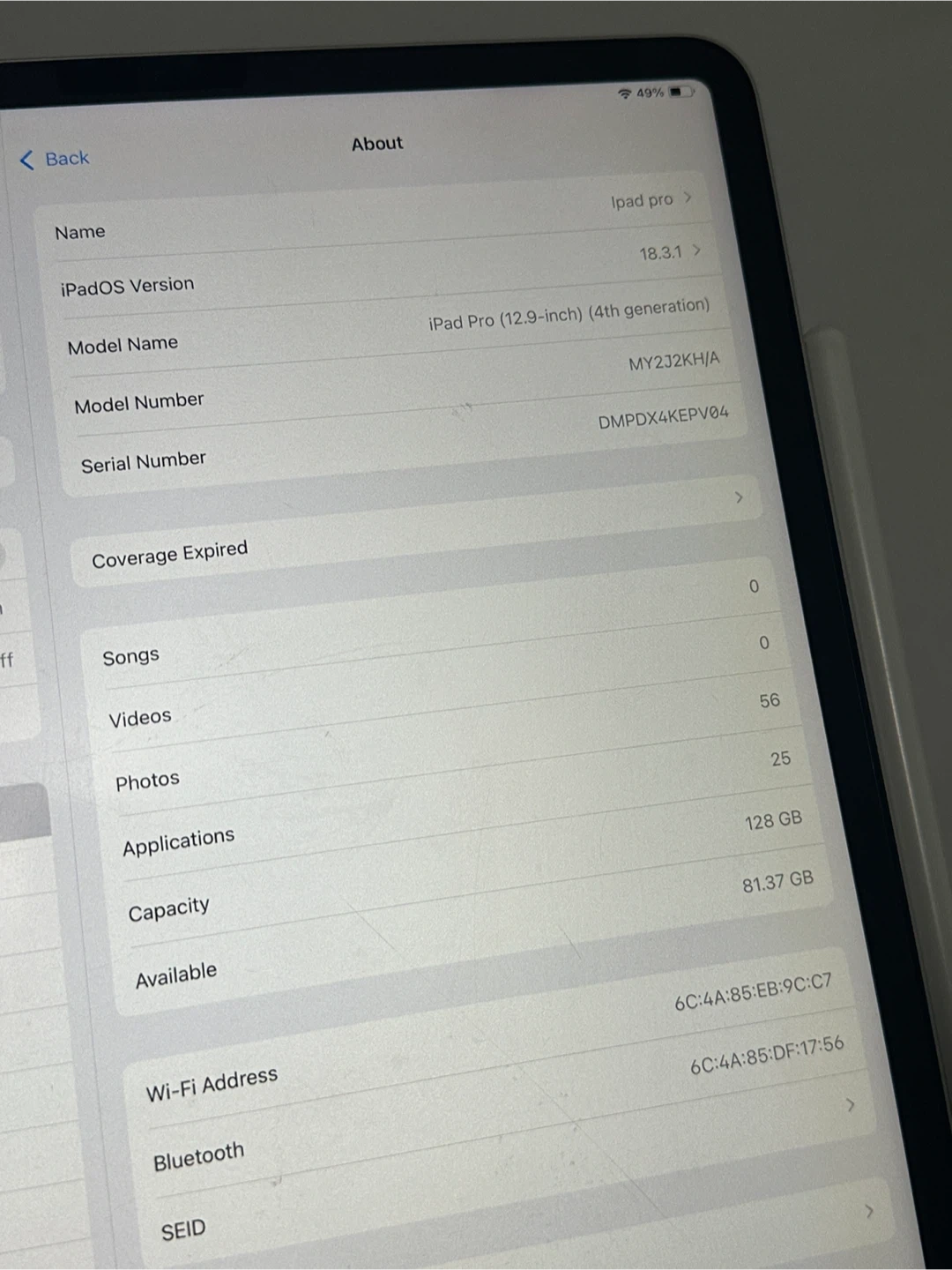 Selling my iPad Pro 12.9-inch 4th Generation along with the Apple Pencil(has name on it) Wifi only/ 128gb It's in great condition but has small scratch on it- I can send you a closer pic if you’d like! I’ll throw in a paper-texture film, an extra pencil tip, a slim wireless keyboard, for free. Perfect for artists, students, or anyone who loves a big, beautiful display 😘