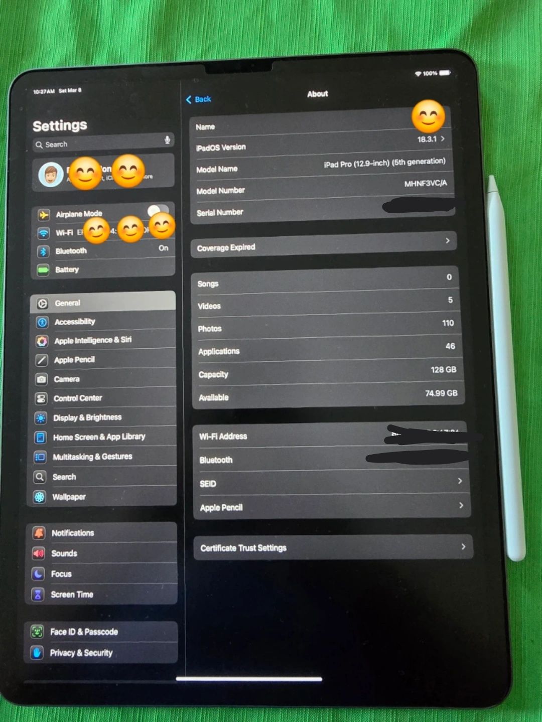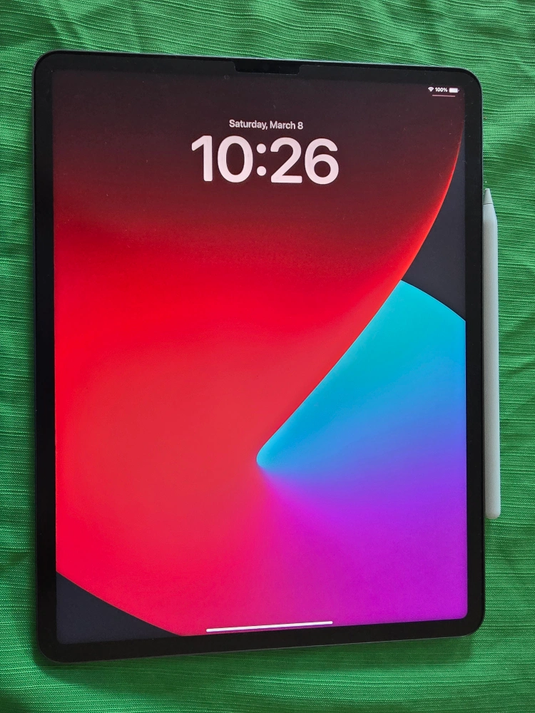 73iPad Pro 12.9-inch (5th generation). 128 GB storage. Space grey. Includes Apple Pencil and charging cable. Excellent condition.