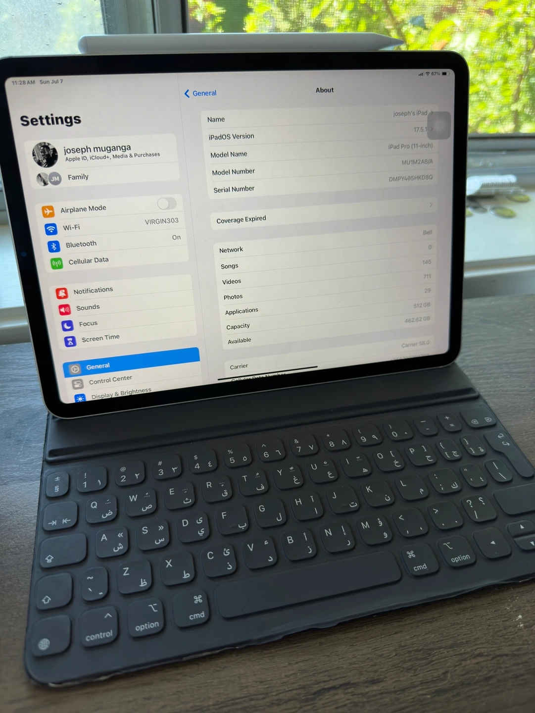 Ipad pro(11 inch), its a 512 gb capacity, has no issues at all and i will add my pencil though its not apple but works very well plus keyboard, its battery is good, works with all cellular networks, price is negotiable