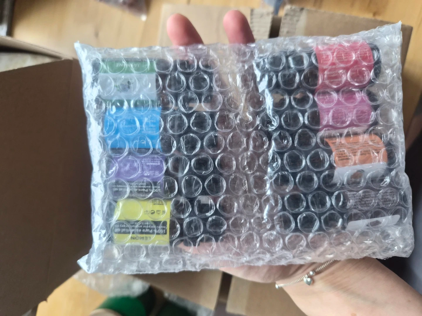 8 different Diffuser Oil Scents and one colouring wax (red) are included