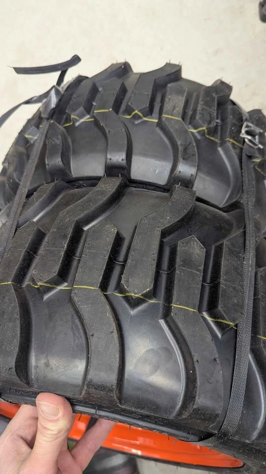 Brand new, never installed. Perfect condition. These are front wheel assemblies for Kubota BX tractors, specifically models BX2350D, BX2360, BX2370, and BX2380. The size is 18x8.50-10.