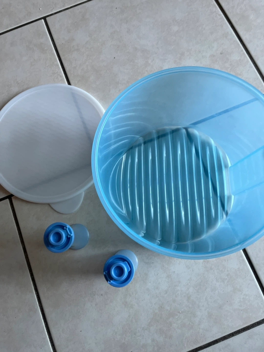 Tupperware fridge smart container and salt and pepper . Store fruits and vegetables. Has two vents for freshness.