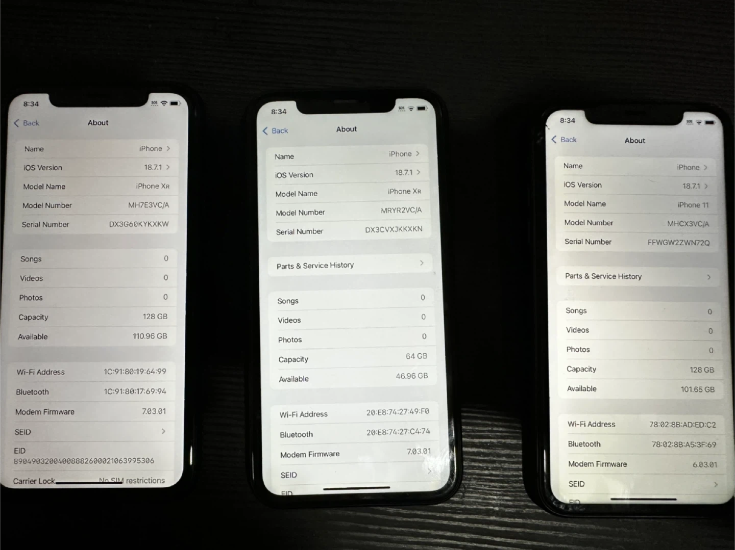 Title: iPhone 11 & 2 iPhone XR – Used Condition Description: Selling 3 iPhones together or separately: iPhone 11 (64GB) – Screen has cracks but still fully functional. BAT(73%) iPhone XR (64GB) – One has some marks/signs of use, still works fine.BAT(78%) iPhone XR (64GB) – Good condition, about 8/10.BAT(95%) All phones are used, factory reset, and ready for a new owner. Price: iPhone 11 – $75 iPhone XR (with marks) – $100 iPhone XR (8/10 condition) – $130 Or take all 3 for $300 Pickup only. Located in BRMAPTON.
