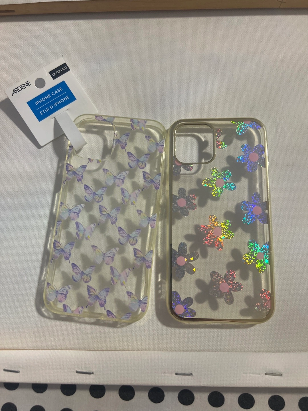 102Two cute iPhone cases for your iPhone 12 or 12 Pro! One has a butterfly design and the other has a holographic flower design