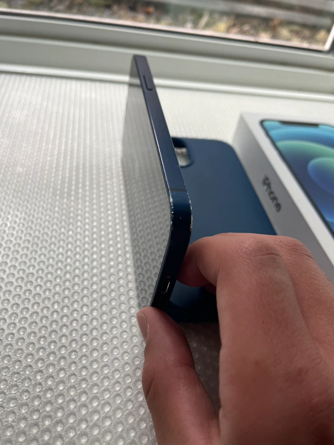 - iPhone 12 for sale, comes with original box and new case. - The phone has no cracks, scratches or dents on the screen or back glass. Although the phones siding has damage, seen in the photos, but with a case (even a clear one) is unoticeable. - Phone has 80% max battery capacity - We can meetup, or I can deliver if your close by. - $315 OBO