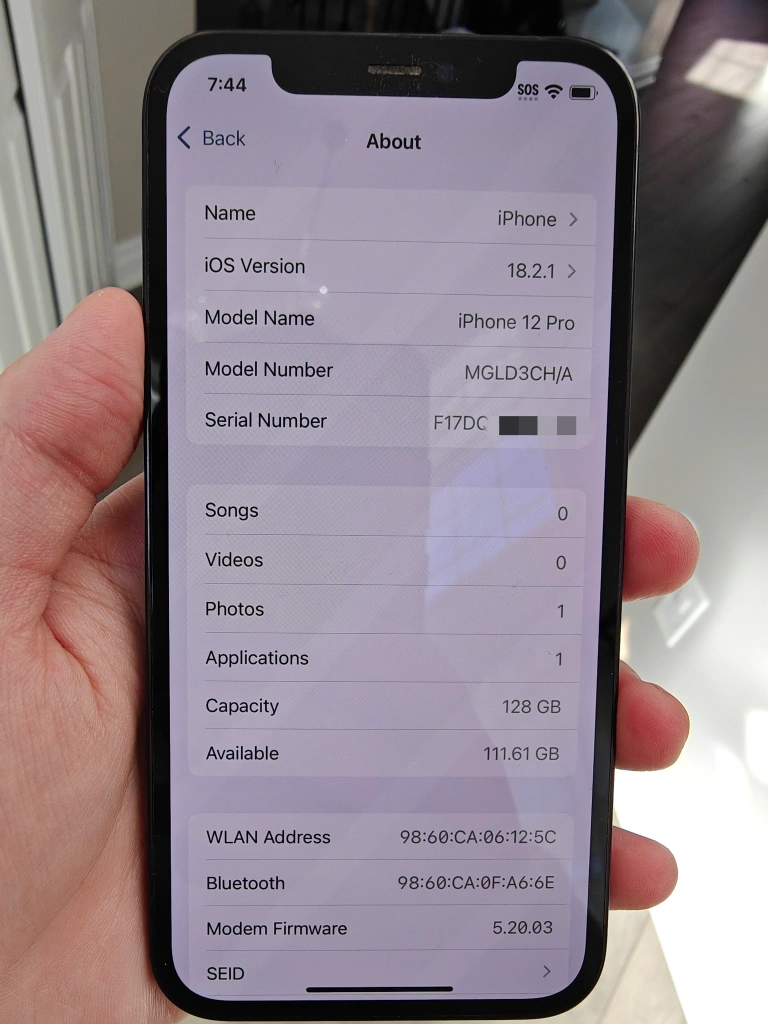 65Used iPhone 12 Pro. 128 GB storage. Blue colour. Battery health 84%. iOS 18.2.1.
