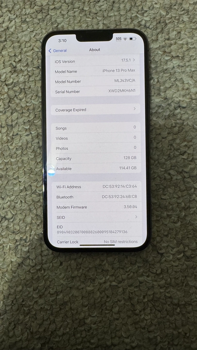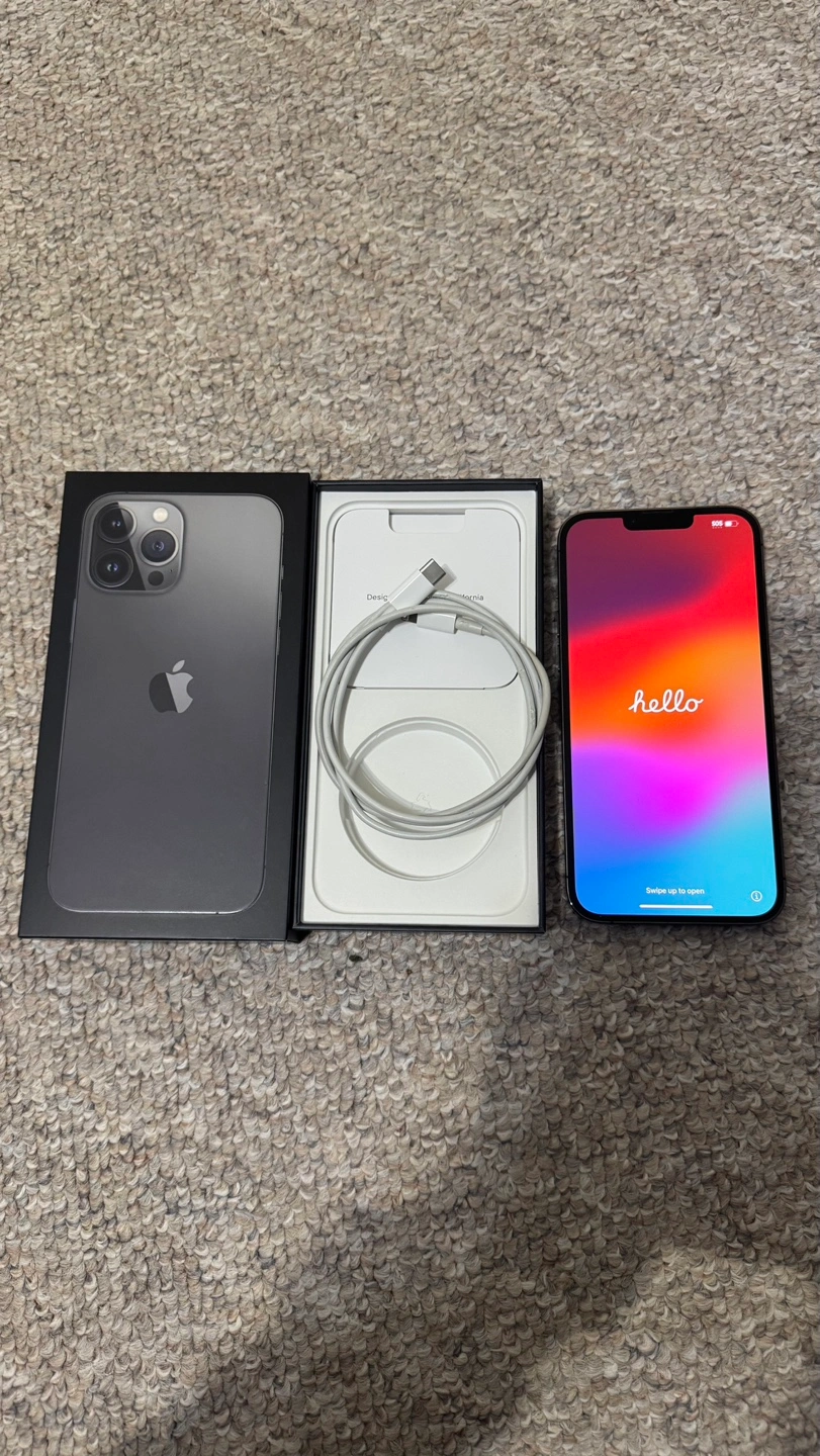 10Used iPhone 13 Pro Max, 128 GB storage. Graphite colour. Includes original box and charging cable. No carrier lock.
