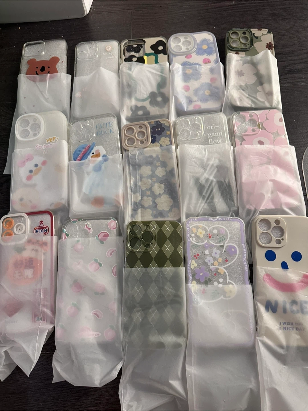 Selling a variety of cute iPhone cases! They come in different designs, including floral patterns, cartoon characters, and other fun styles. They're all still in their original packaging 5$ for each 8$for 2 10$for 3