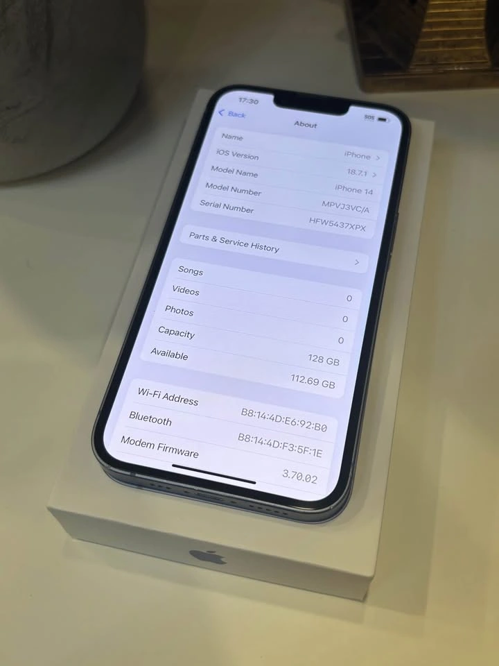 Apple iPhone 14 128GB in Blue Unlocked 10/10 condition No dents or scratches, used in protector since day one No issues, everything works Comes with Box and charging cable Demand $460 OBO Location: Ajax