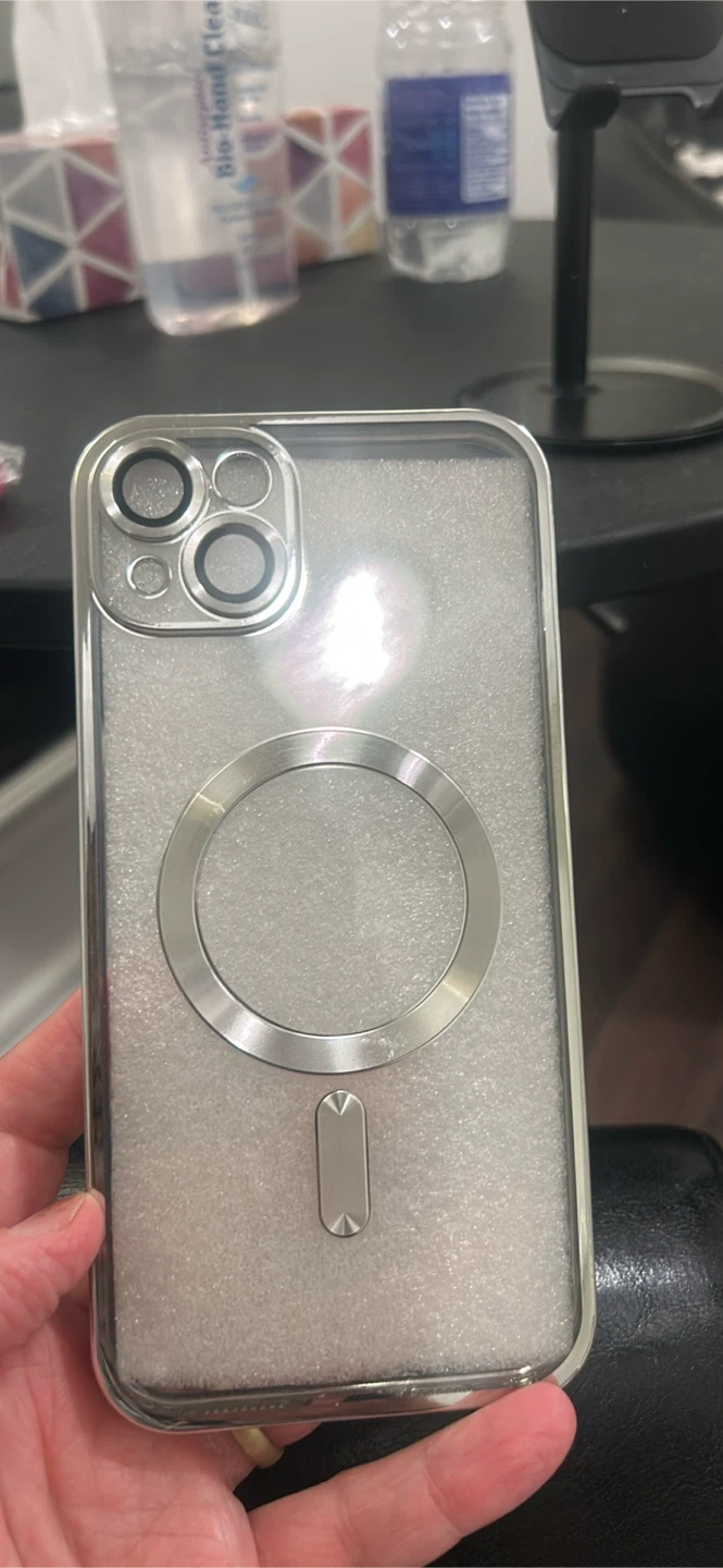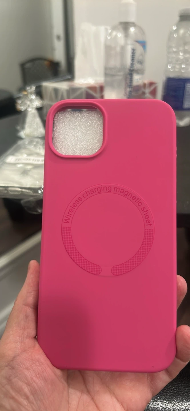 Selling two iPhone 14 Plus cases. One is clear with a magnetic ring, and the other is a vibrant pink liquid silicone case. 1. Clear $5.00 2. Pink $7.00