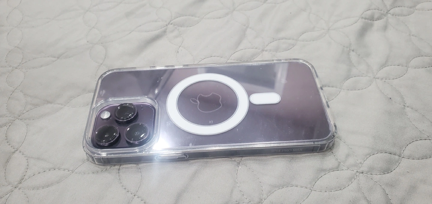 23iPhone 14 Pro Max 256 With original Airpods Color : purple Comes with USB cable and back case Battery Life : 84% Neatly maintained with screen protectors from and back and also camera protectors too,