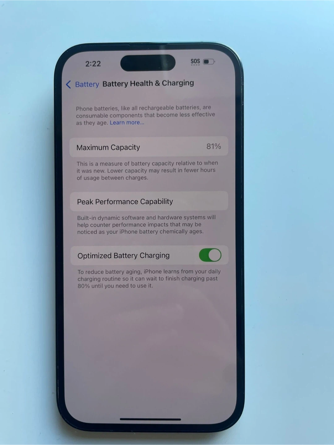 12Selling an iPhone 14 Pro in space black. The battery health is at 81% so it's still in great condition for everyday use! 128GB Storage & no cracks