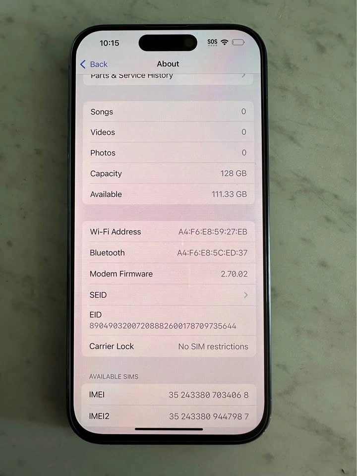 Blue Titanium iPhone 15 Pro 128gb 88% battery health Has an aftermarket screen Everything functions perfectly including True Tone and Face ID Fully unlocked and ready for a new user Comes with box, case, and screen protector Pickup in millwoods