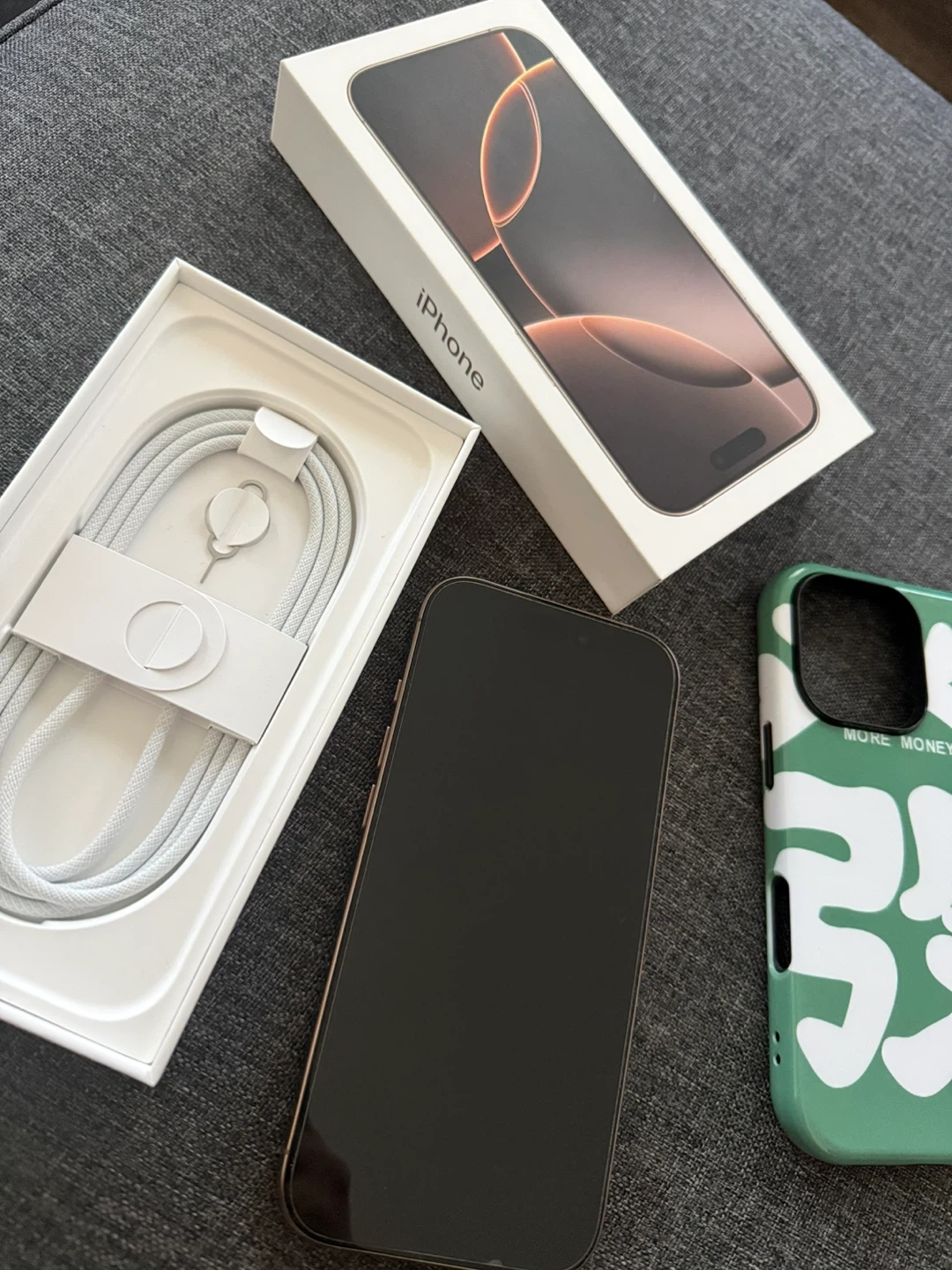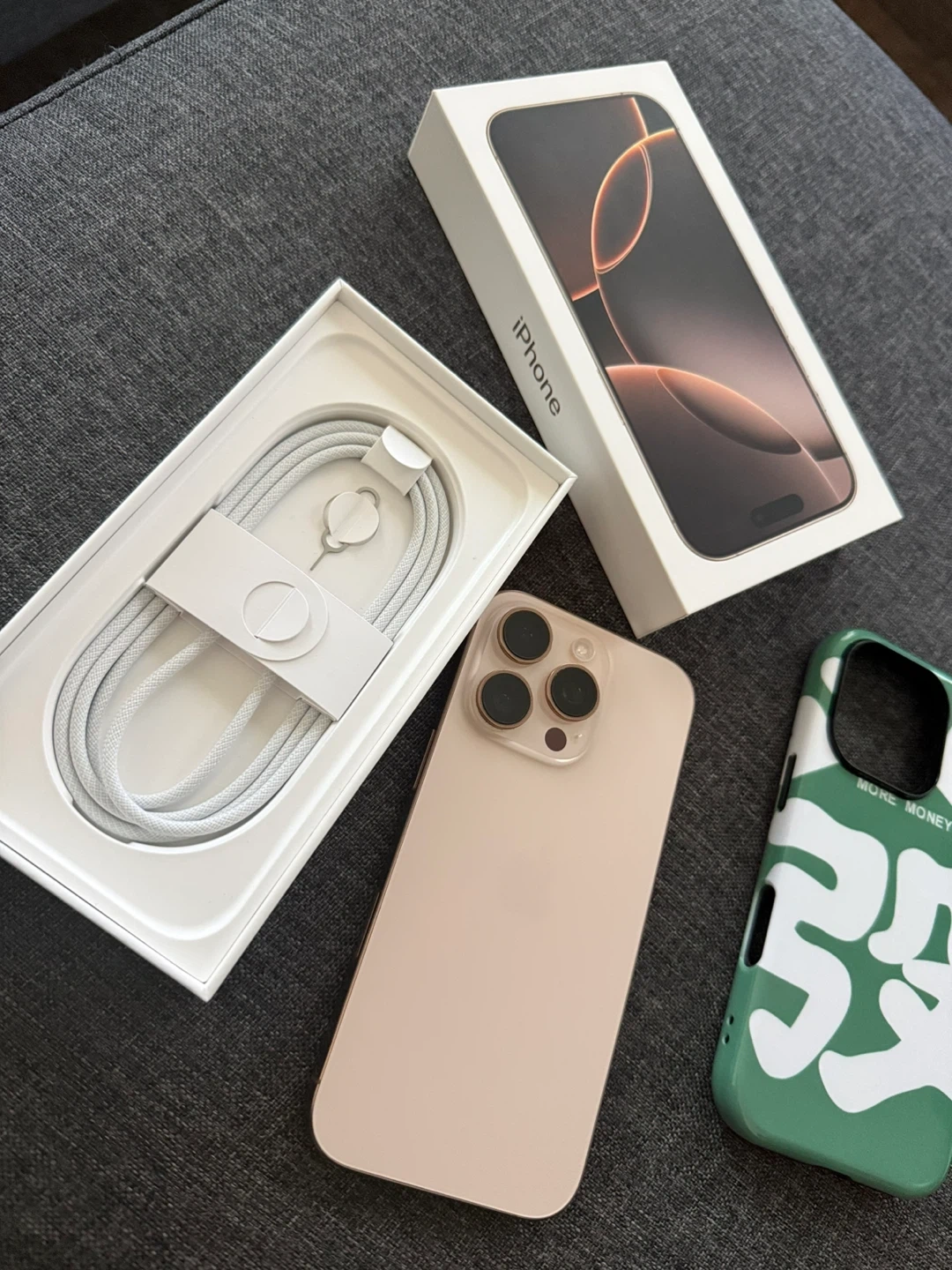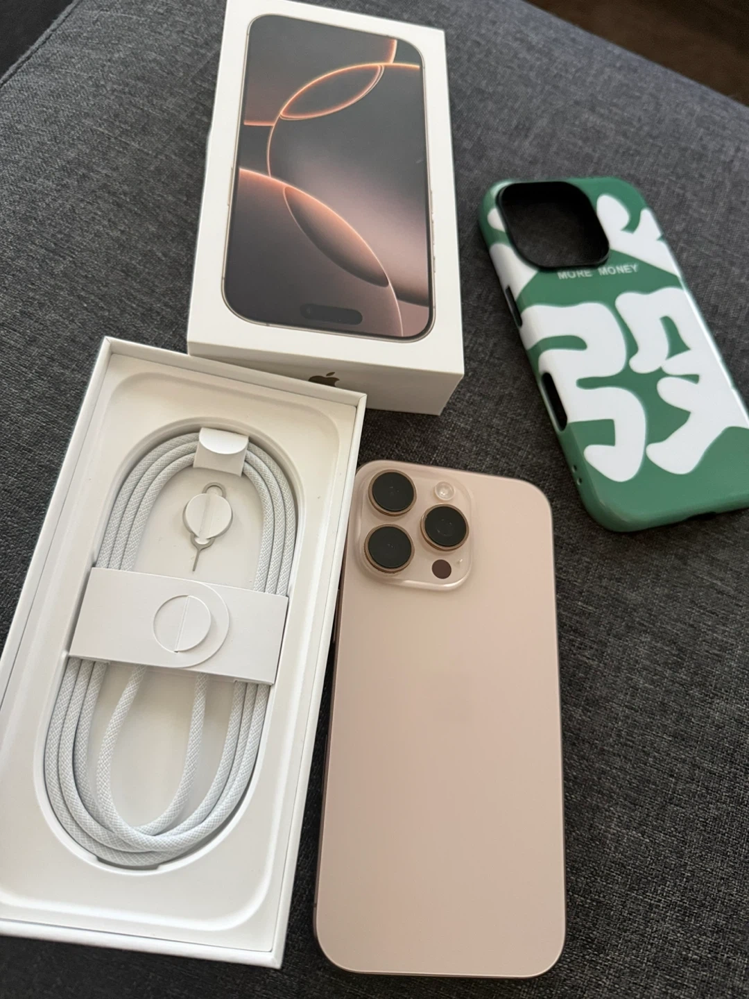 Selling an iPhone 16 pro , Desert titanium, 128 GB . It comes with the original box and charging cable. Great condition. Battery health is 99 percent. No damage No scratches looks like new . Also included is a phone case !!