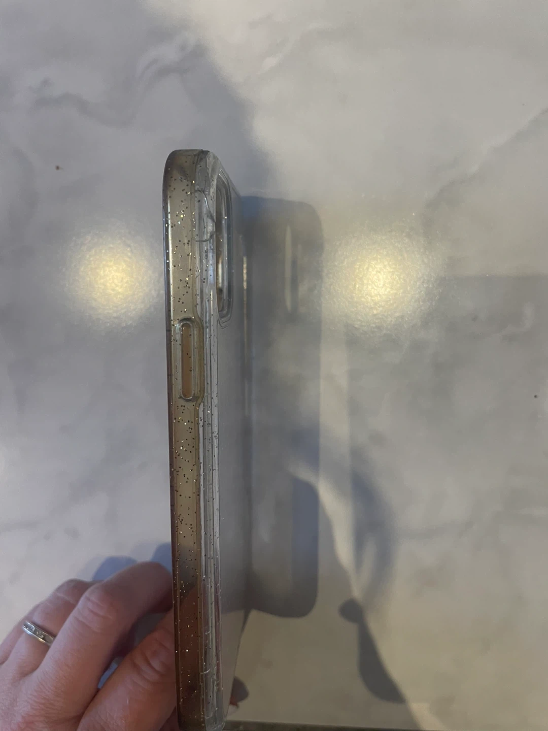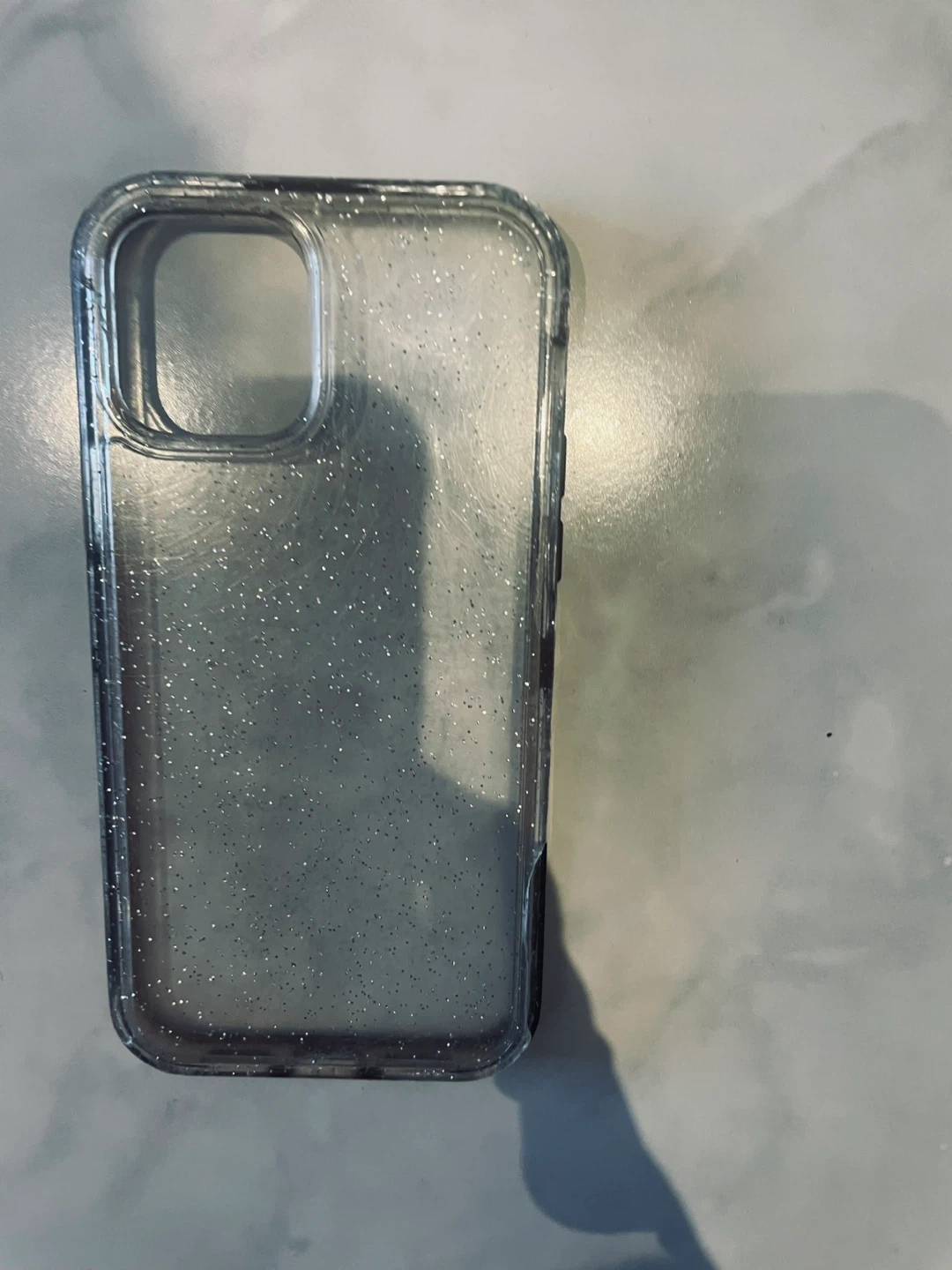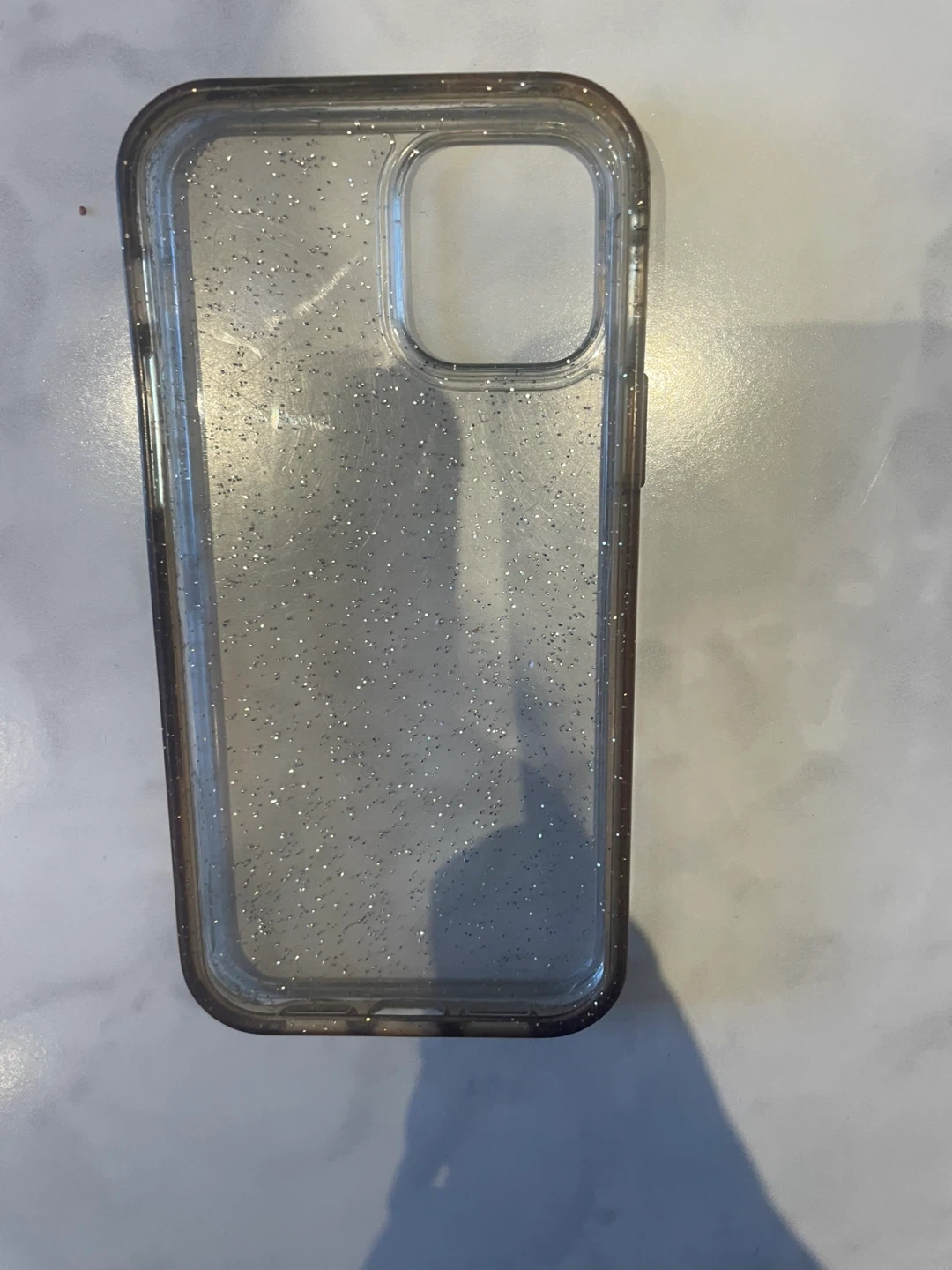 Selling a clear iPhone 12 case with a touch of glitter! It's in great condition and ready to protect your phone. It fits snugly and has a nice, slim profile. Perfect for adding a bit of sparkle without being too flashy