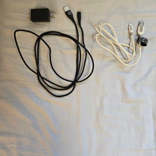 15Black cable (brand unknown) is approximately 70 inches in length. It has a USB plug on the other end of the cord and comes with a North American, dual voltage, wall plug adapter ($5 for cord & adapter). Anker brand, white cable is approximately 40 inches in length and has a USB plug on the other end of the cord ($3 for cord). Both are in good working condition. Available for pickup near Cambie Road & No. 5 Road in Richmond.