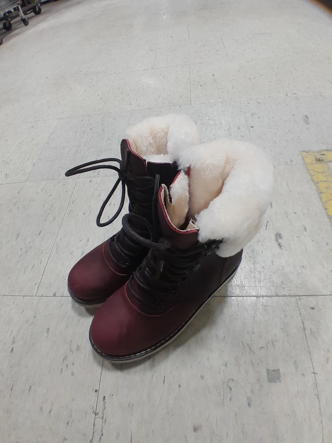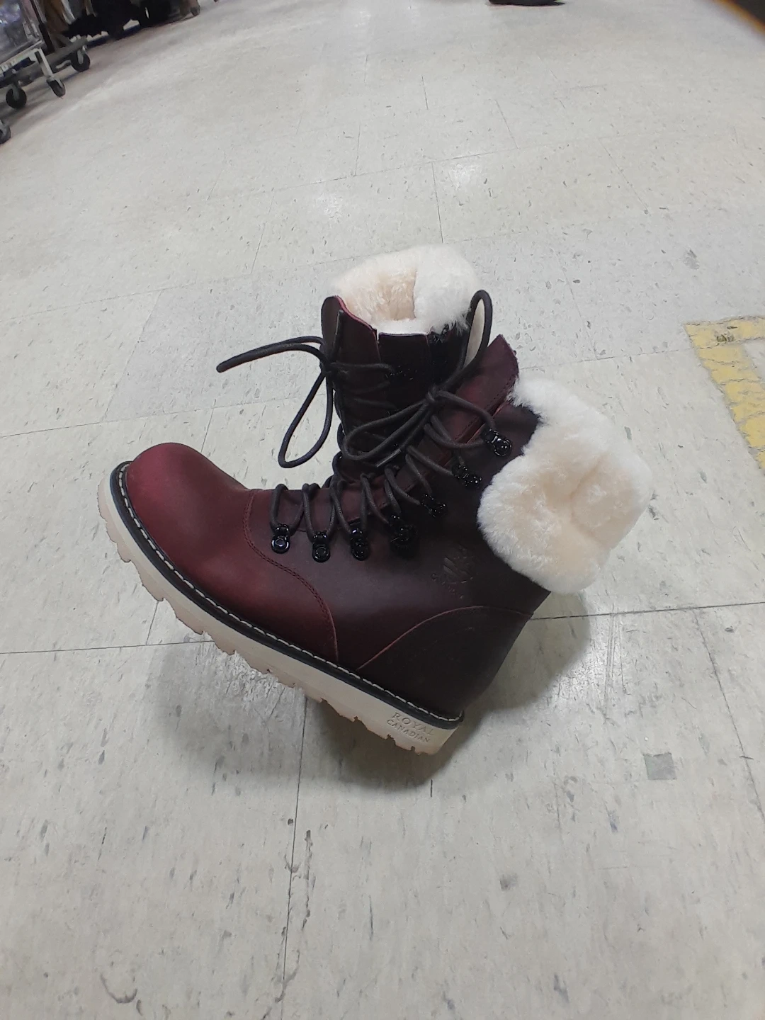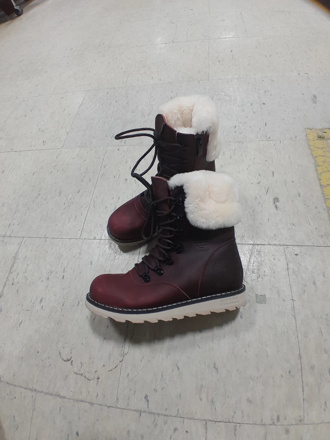 Stay warm and stylish in these burgundy winter boots from Royal Canadian. They feature a comfortable fur lining and a durable rubber sole for traction. Perfect for cold Canadian winters! Women's size 8.5.