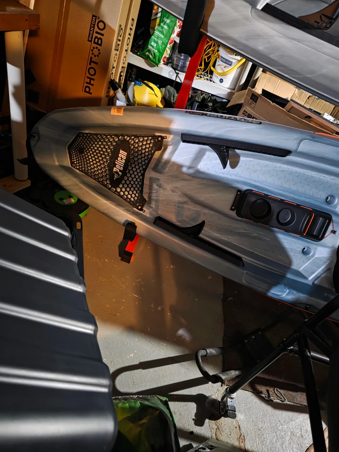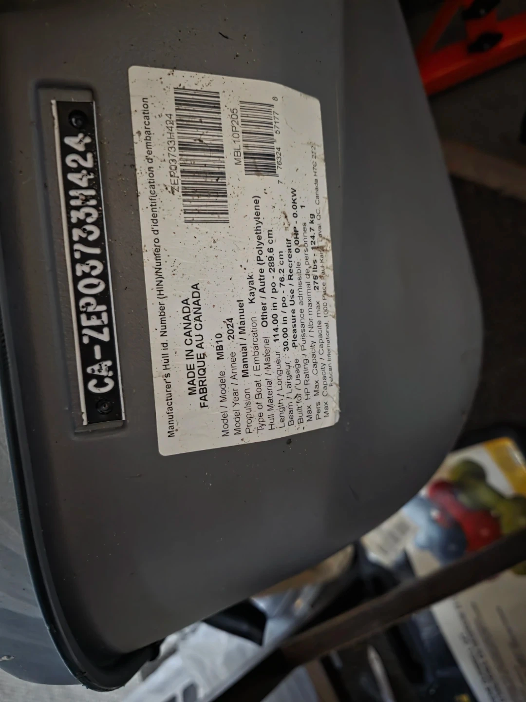 This is a Pelican Sentinel 100X Angler kayak. It's made of durable polyethylene. Maximum capacity is 275 lbs. 10 feet long.This kayak is great for fishing trips on calm waters! Used one time, great kayak but have upgraded