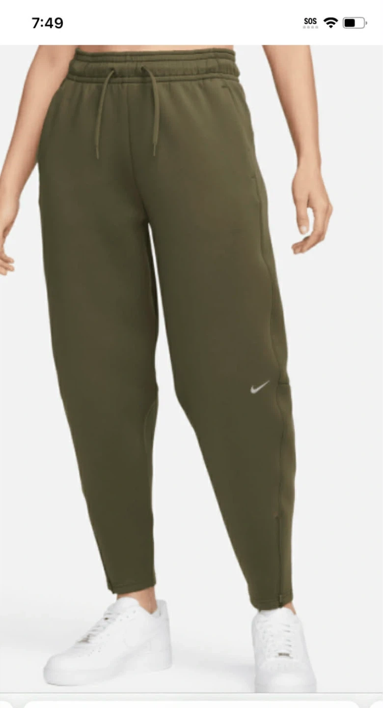 Selling a pair of Nike women's grey sweatpants. These pants have an elastic waistband with a drawstring for a comfortable fit. Features zippered ankles for adjustable styling. Made from a soft, comfortable fabric perfect for everyday wear or athletic activities.
