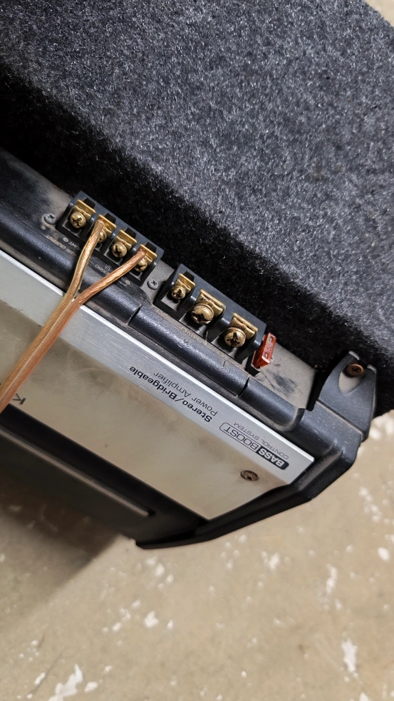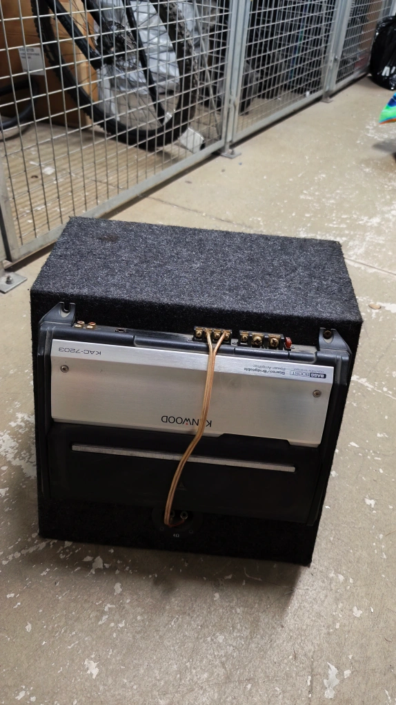 Selling a Kenwood KAC-7203 Stereo/Bridgeable Power Amplifier paired with an MTX subwoofer in an enclosure. It's in used condition, but ready to boost your car audio system!