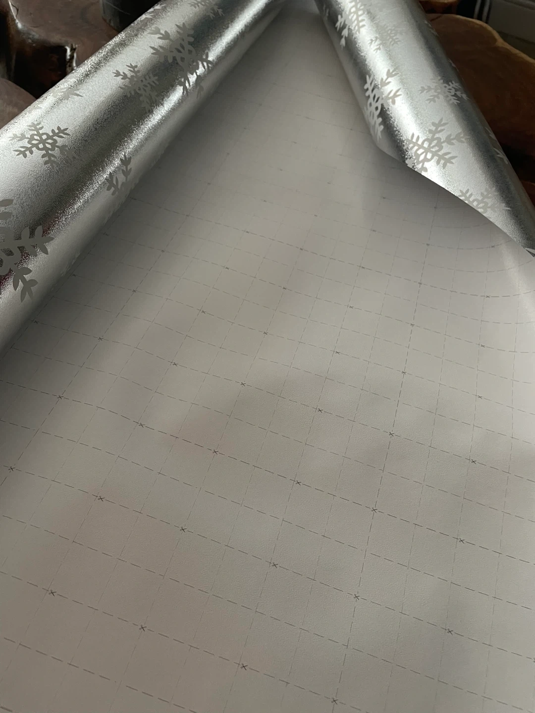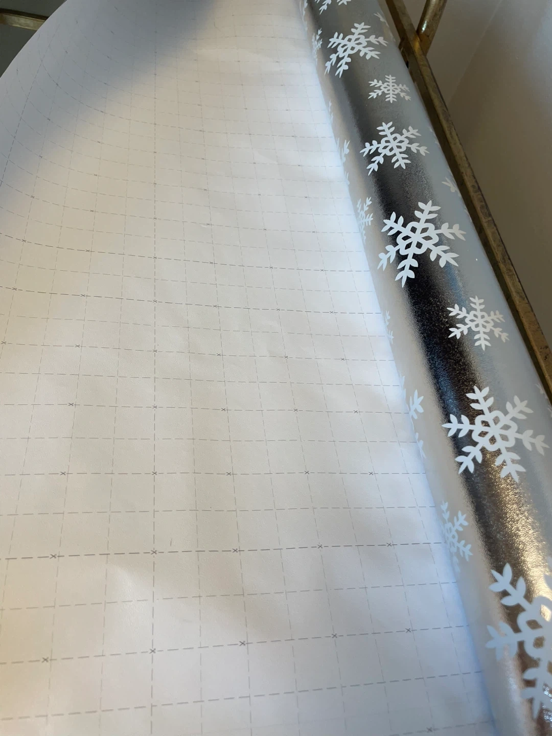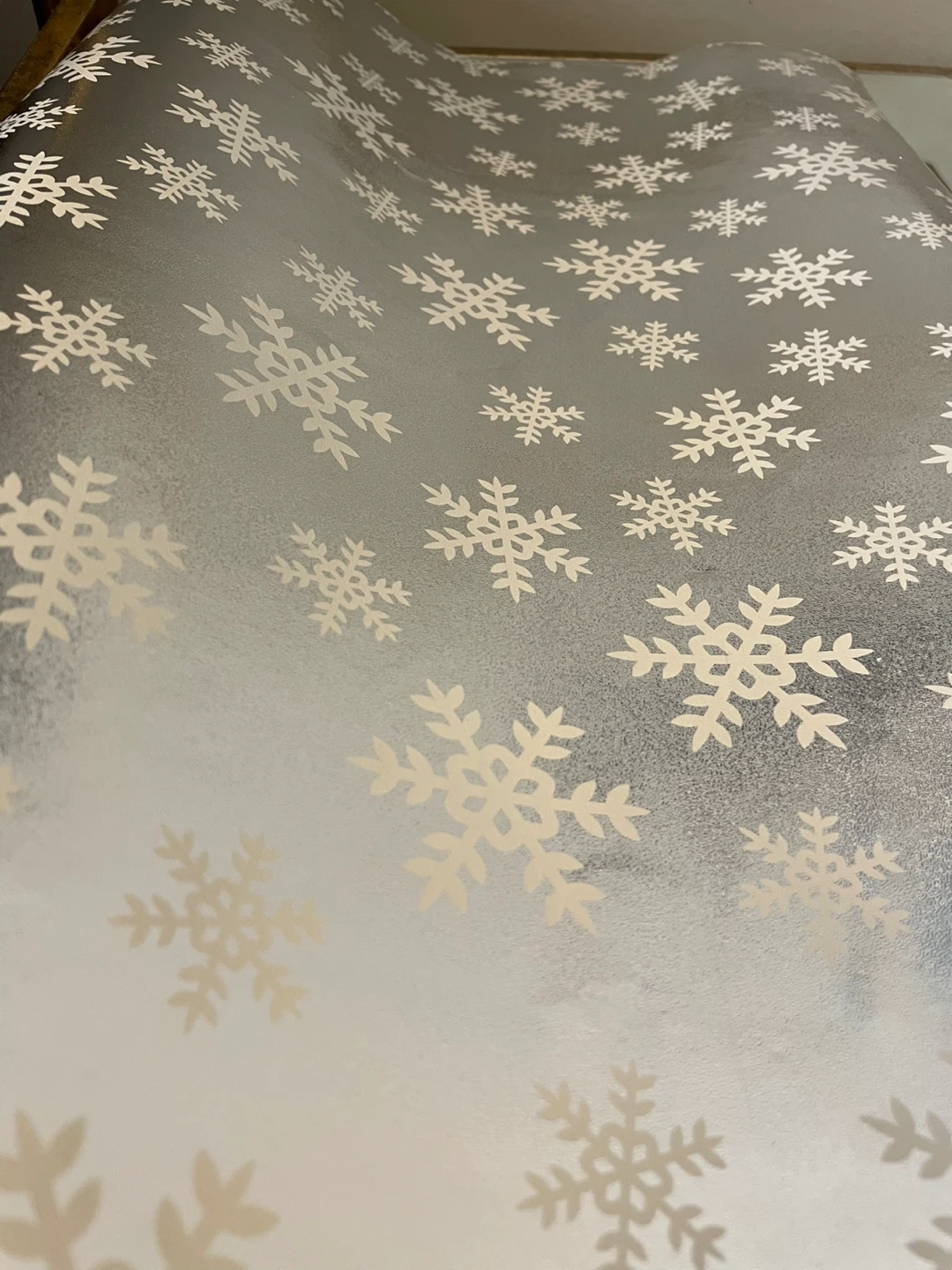 Selling a mega roll of brand new metallic snowflake gift wrap.