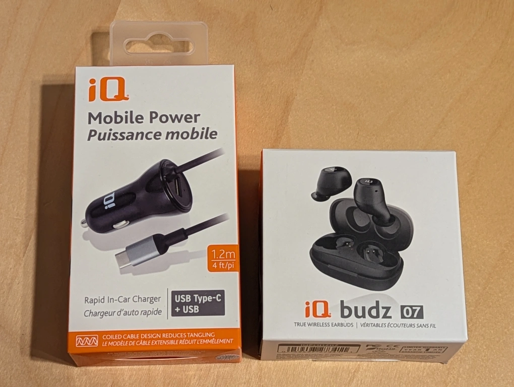 15Bundle includes iQ Mobile Power rapid in-car charger with USB Type-C and USB ports. Also includes iQ Budz 07 true wireless earbuds. Coiled cable design. 1.2m cable length.