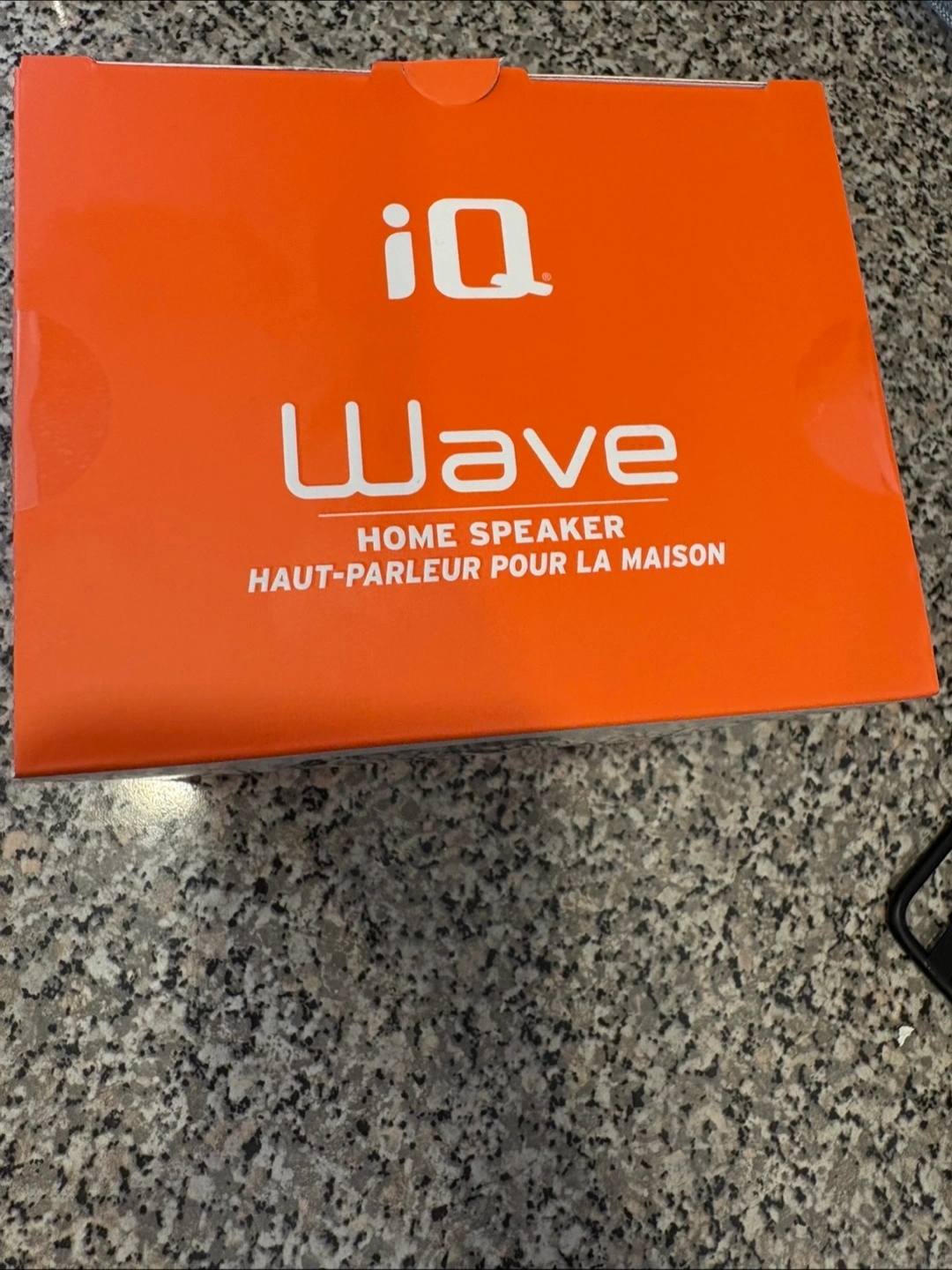 89A home speaker. Packaging is orange and white. The speaker itself is dark grey. Features Bluetooth and wireless charging. This speaker can play your favourite calming music.