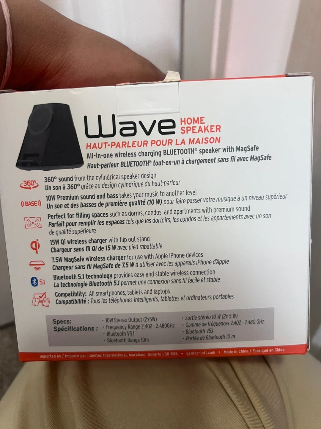 20Selling an iQ Wave Home Speaker. It is an all-in-one wireless charging Bluetooth speaker with MagSafe. The speaker provides 360° sound from the cylindrical speaker design. It has 10W premium sound and bass. It is perfect for filling spaces such as dorms, condos, and apartments with premium sound. It has a 15W Qi wireless charger with flip-out stand and 7.5W MagSafe wireless charger for use with Apple iPhone devices. Bluetooth 5.1 technology provides easy and stable wireless connection. It is compatible with all smartphones, tablets, and laptops