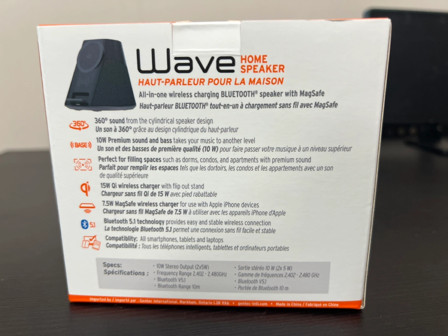 52Brand new iQ Wave home speaker. Features 360° sound, Bluetooth 5.1, and 7.5W MagSafe wireless charging. Perfect for apartments and condos. Includes Qi wireless charging.