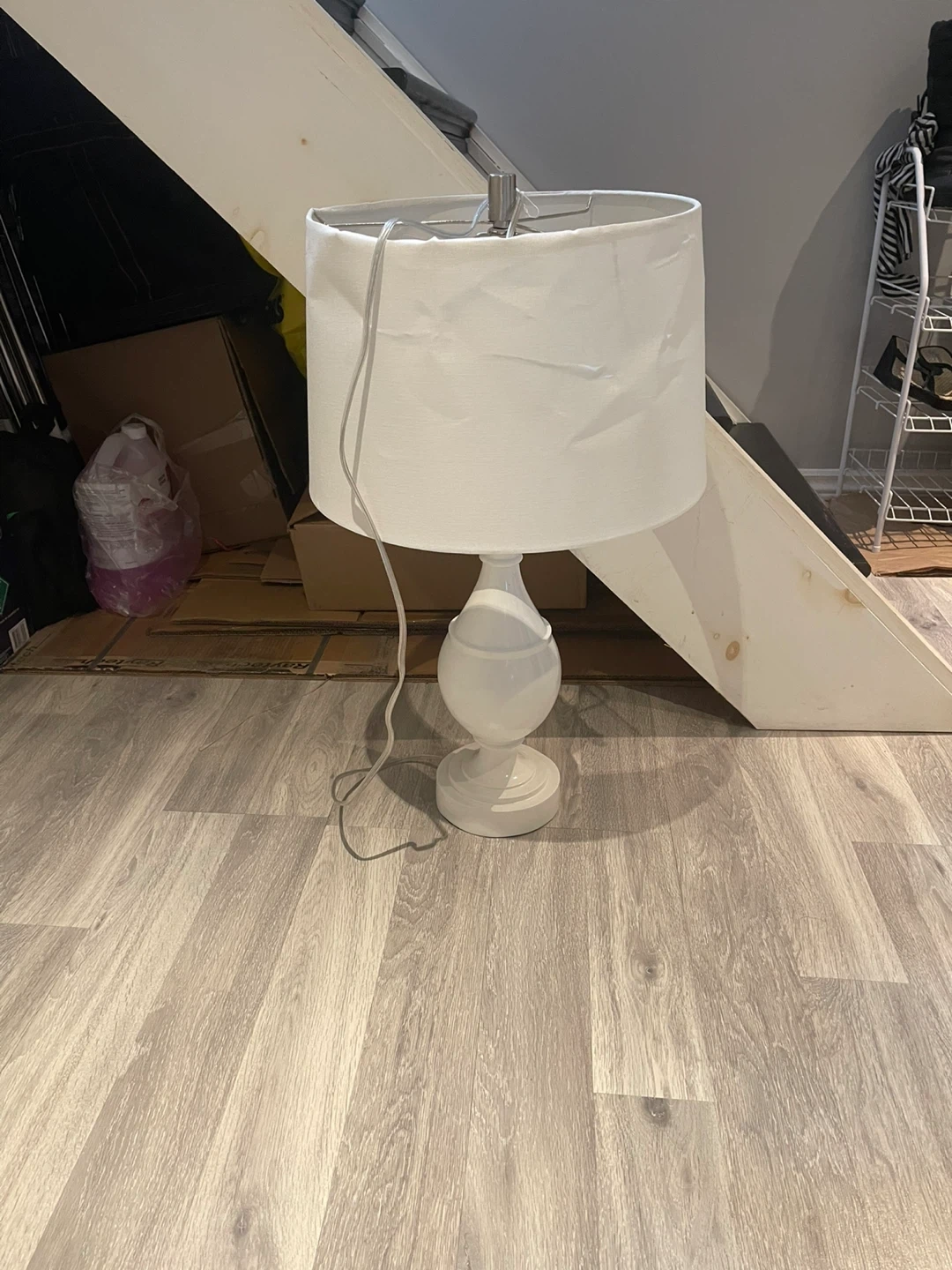 Selling a lovely white table lamp! It features a classic design with a fabric shade. Perfect for adding a soft glow to any room in your home. It's in great condition and ready to brighten up your space