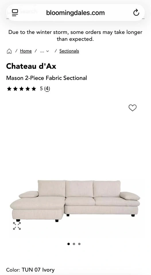 Chateau d'Ax Couch Mason 2-Piece Fabric Sectional