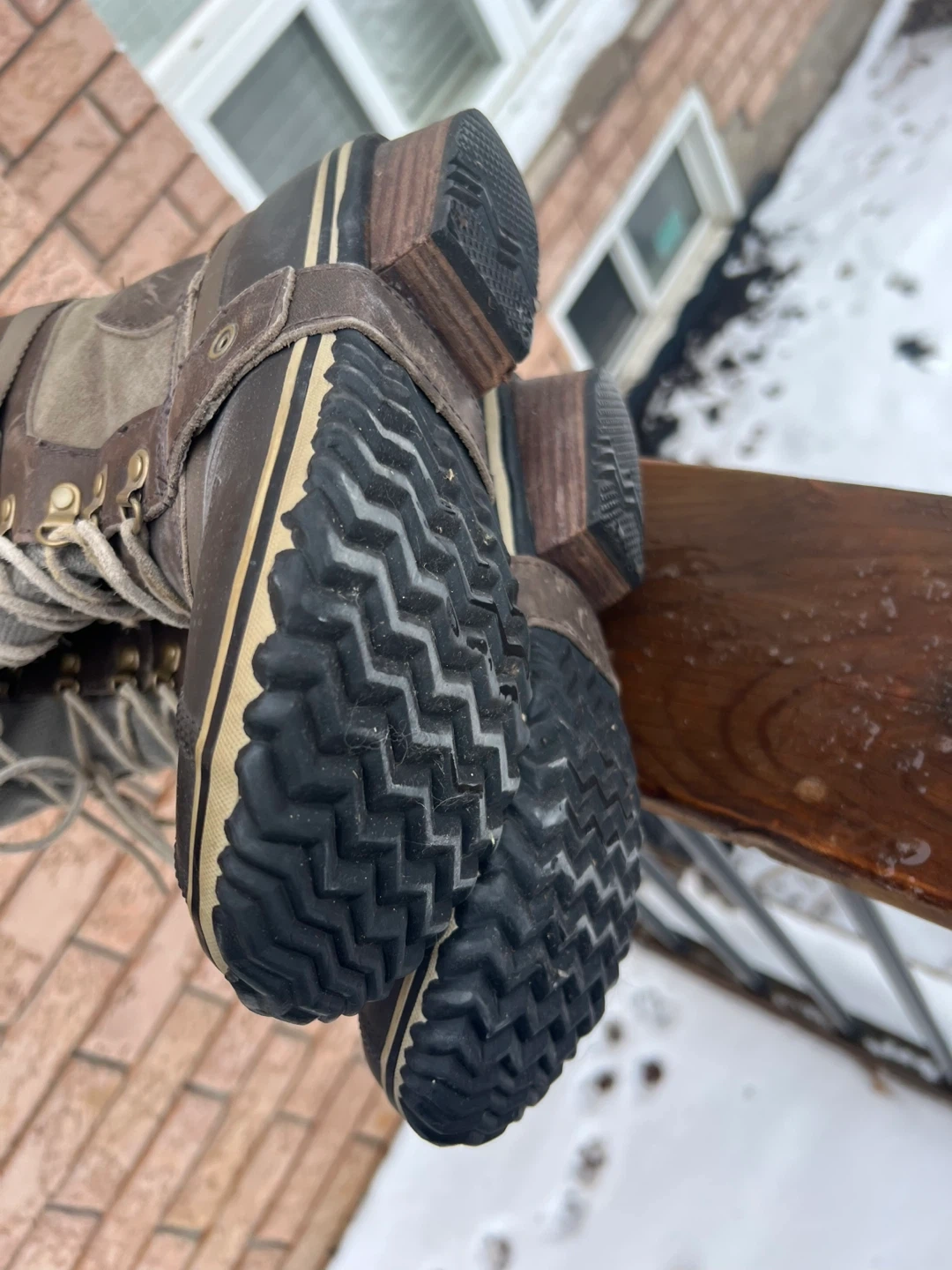 These Sorel boots are built for winter weather. They feature a lace-up front and a rubber sole for traction.They're great for keeping your feet warm and dry during snowstorms!