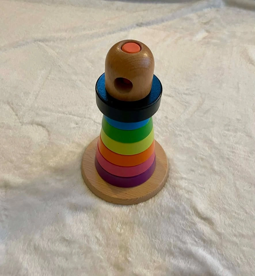 The Ikea Stackable Wooden Lighthouse is fun and engaging any way you stack it! Enhance your little ones' imagination while helping in development of fine motor skills. This toy has tons of fun ways for your baby to play and explore! Stacking toys promote early child development for both the brain and body. As your baby learns to stack the rings on the base from biggest to smallest, they can begin to understand the concept of relative size.