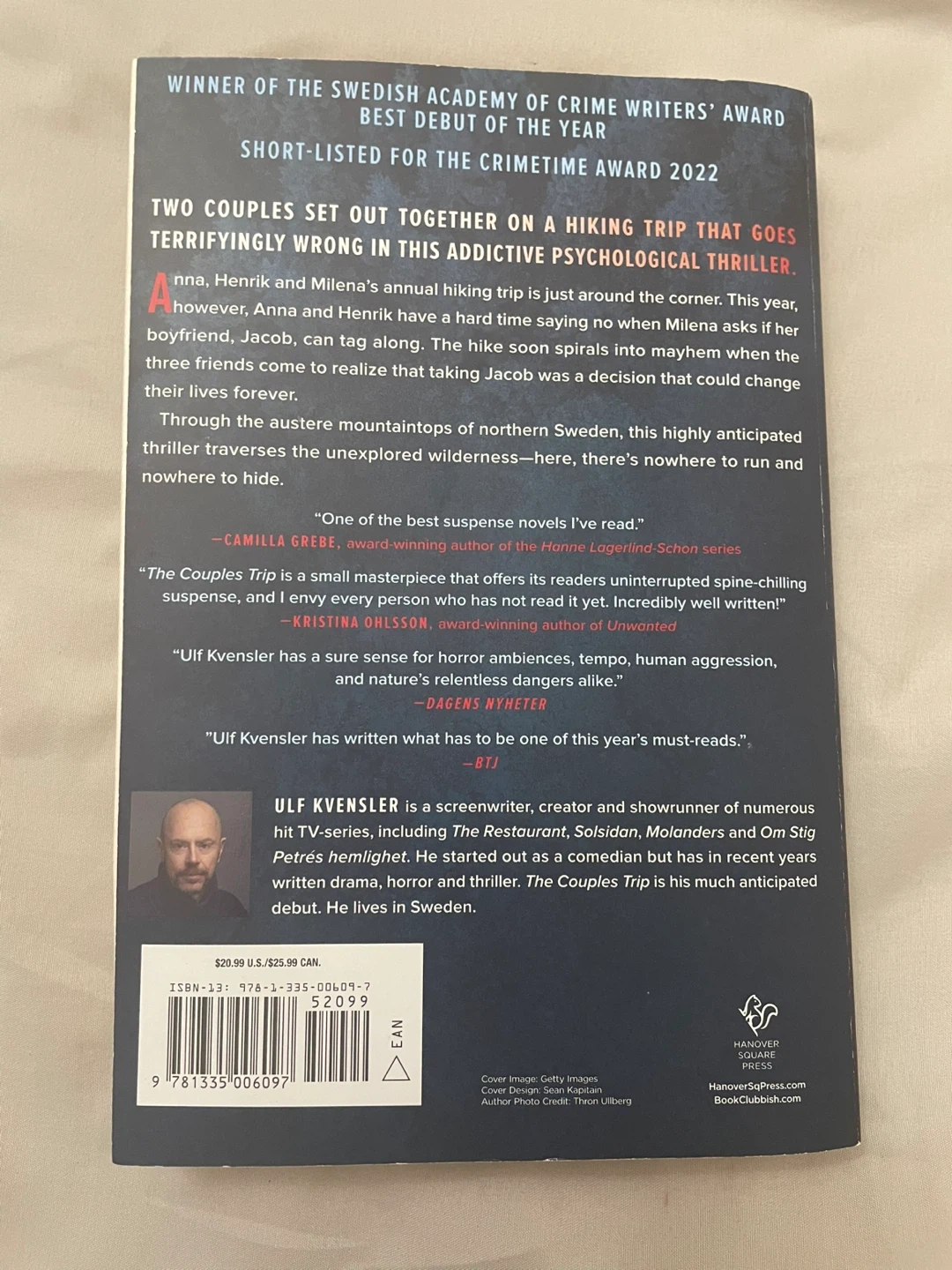 This international bestseller is a gripping psychological thriller by Ulf Kvensler. It's a novel about two couples whose hiking trip goes terribly wrong.