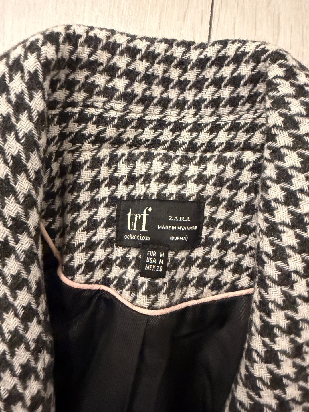 Zara TRF houndstooth coat in black and white. Double-breasted style with two button closure. Made in Myanmar. Size M (EUR M, US M, MEX 28).