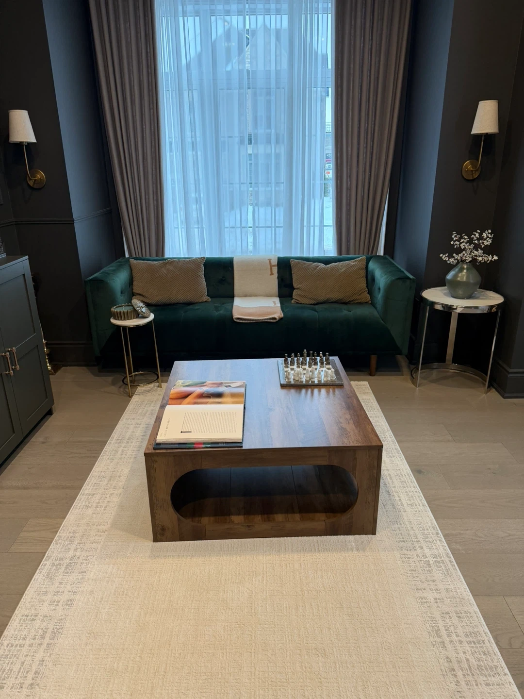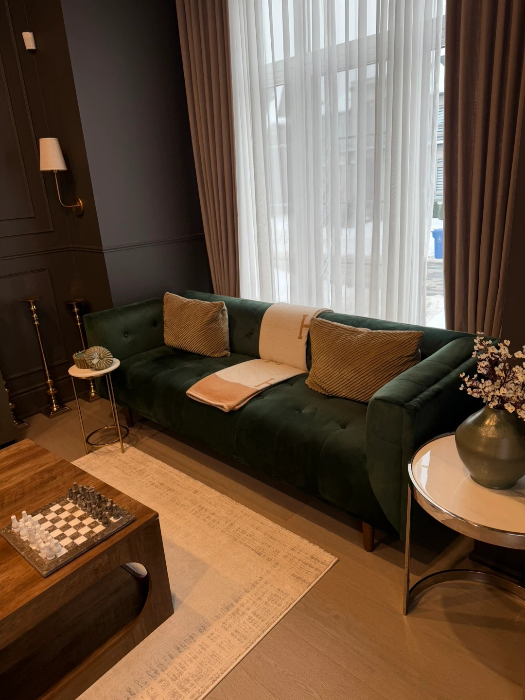 Emerald Green Velvet Sofa coffee table