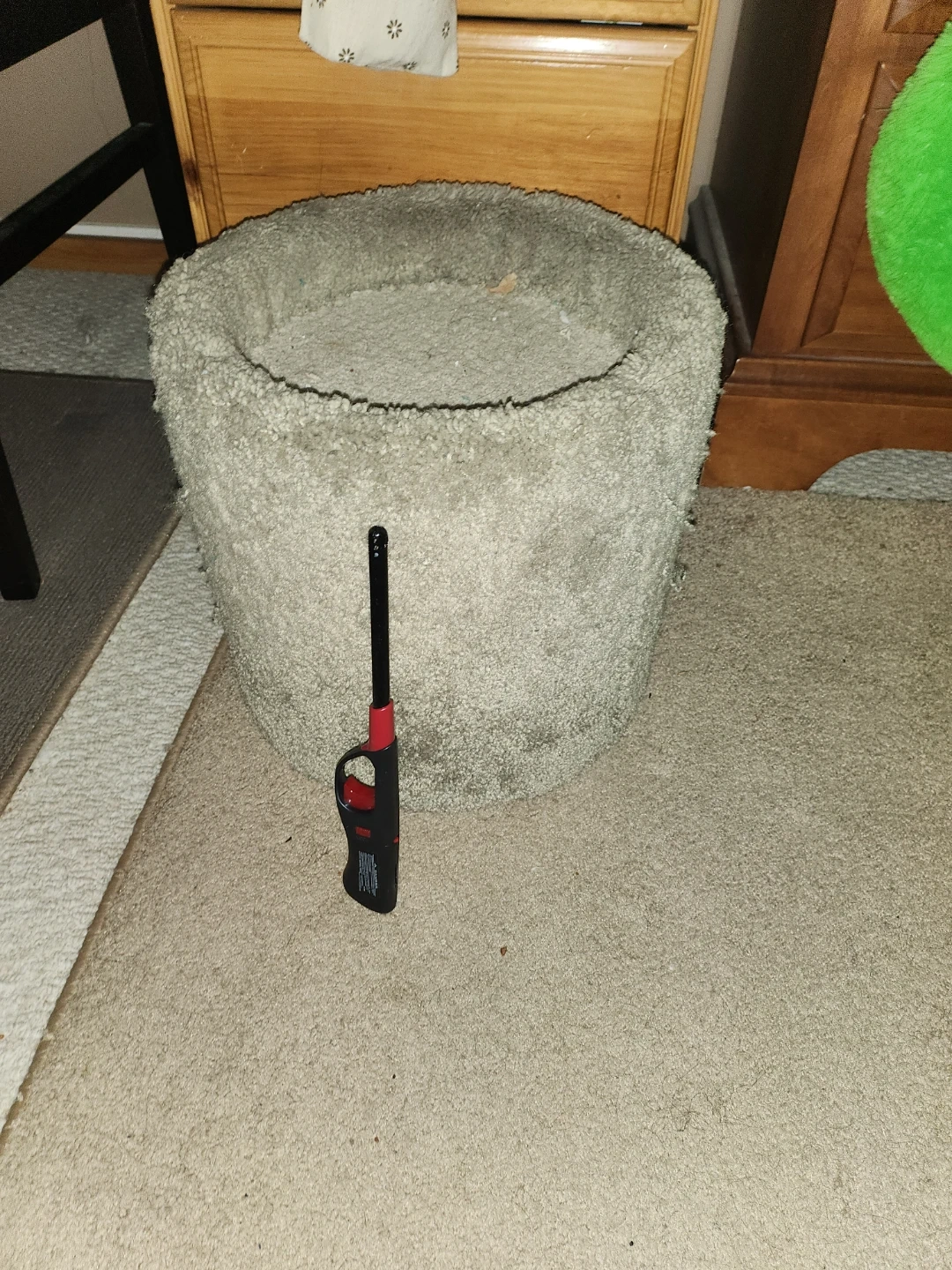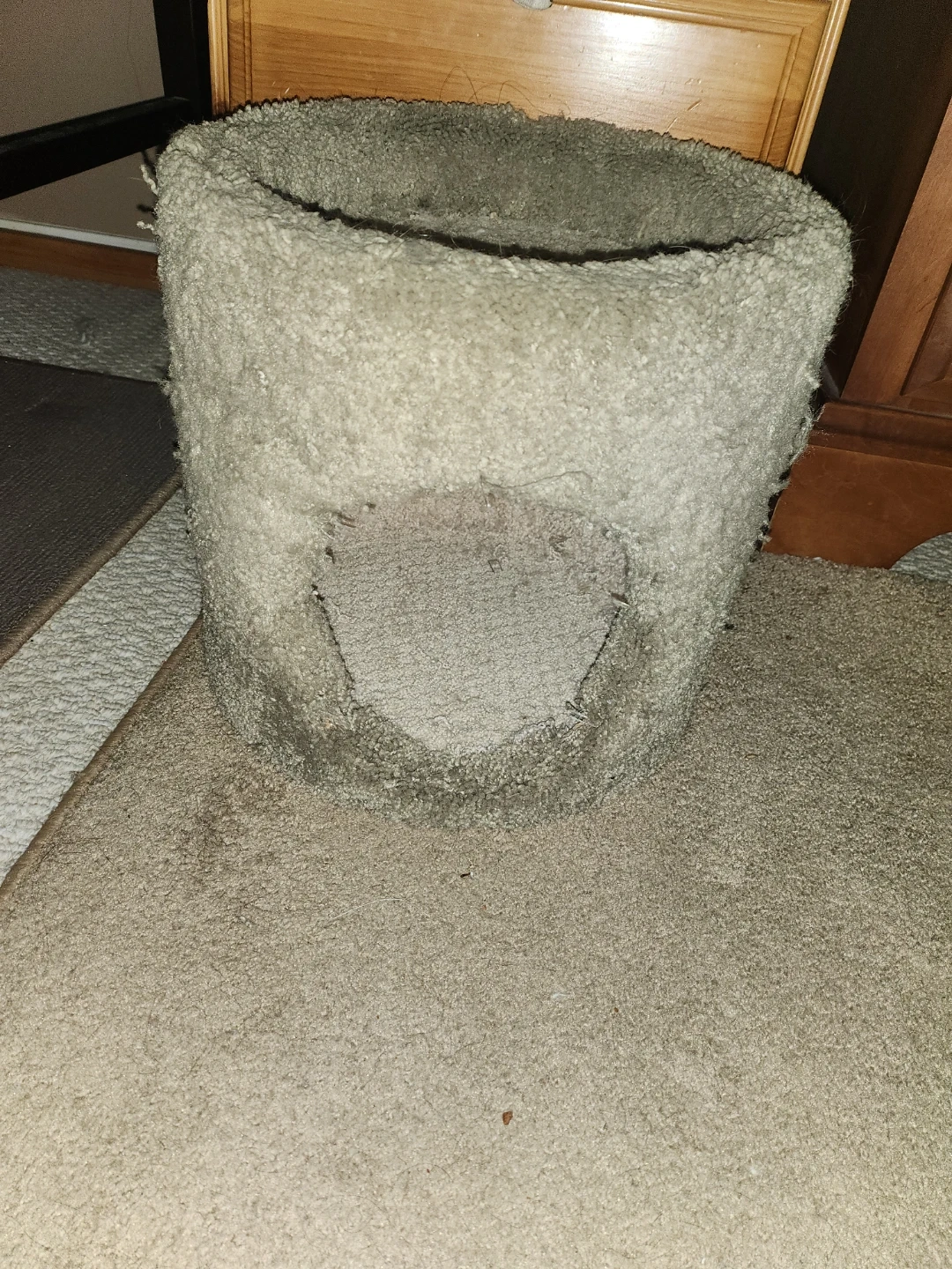 Small cat house/scratcher for sale. It's actually light green if that matters. It's mostly not used except the spot in the third pic. (It's light usage, sorry the pics are special.)