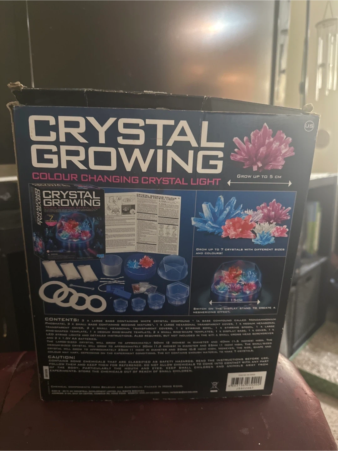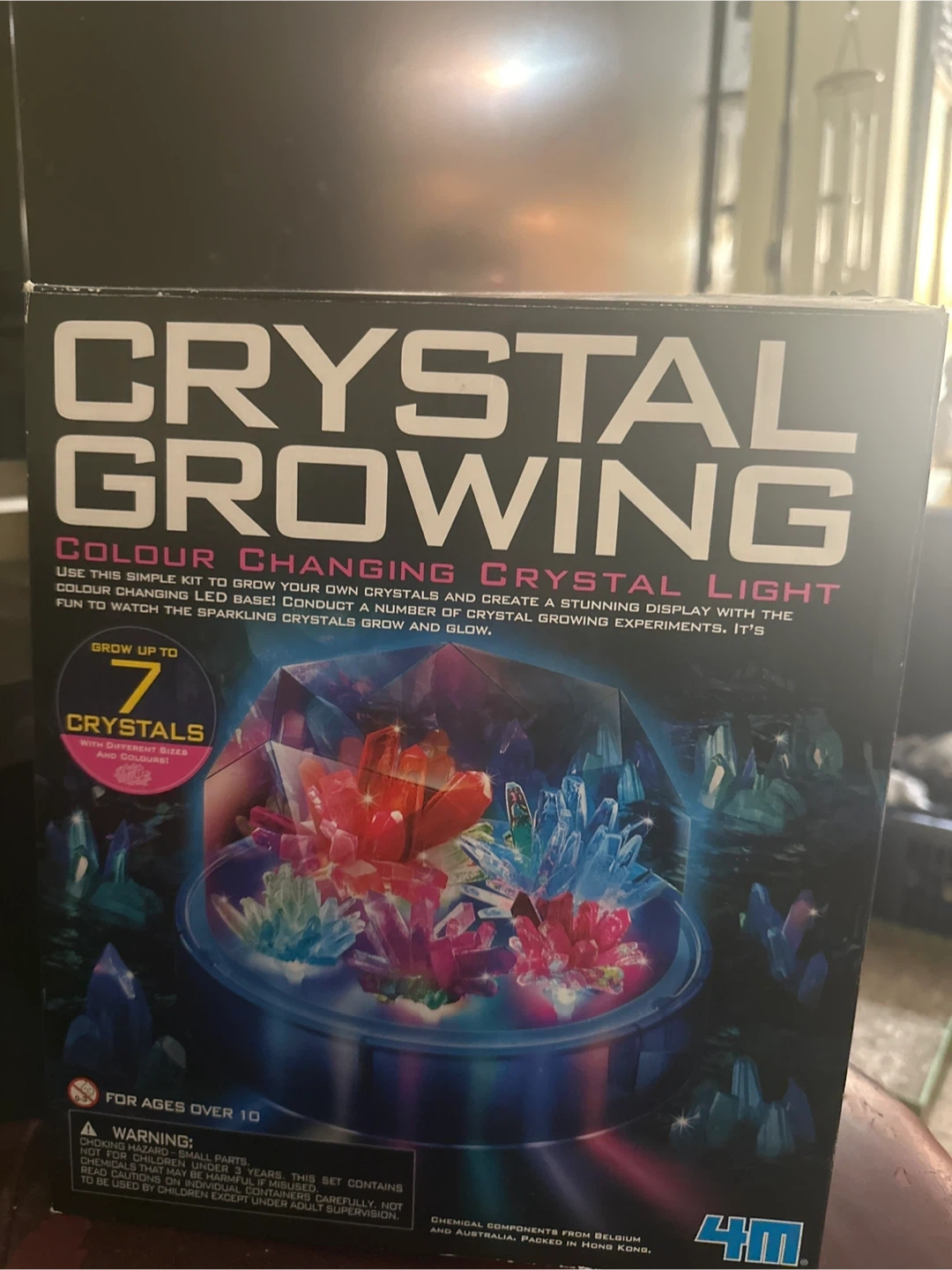 This kit lets you grow up to 7 sparkling crystals with different sizes and colours! Watch them grow and create a stunning display light. Includes base, growing mixture, and display cover. For ages over 10.